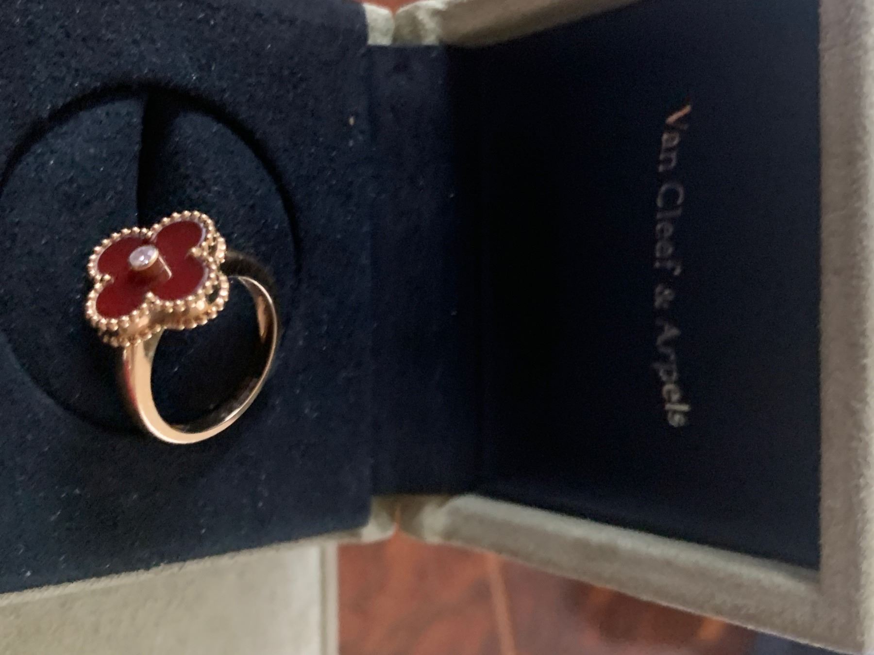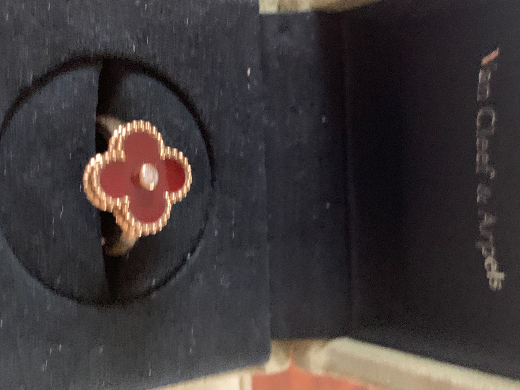 Style: Alhambra Shape Carnelian & Diamond Ring