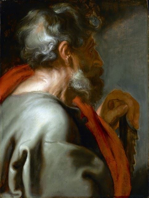 Artist: Van Dyck - Title: The Apostle Peter - Medium: Fine Art Reproduction Giclee on Canvas - Image Size: Approximately 32 inches x 24 inches - Unframed on Unstretched Canvas - Biography: Sir Anthony van Dyck was a Flemish Baroque artist who became the leading court painter in England after success in the Southern Netherlands and Italy. - The seventh child of Frans van Dyck, a wealthy Antwerp silk merchant, Anthony painted from an early age. He was successful as an independent painter in his late teens, and became a master in the Antwerp guild in 1618. By this time he was working in the studio of the leading northern painter of the day, Peter Paul Rubens, who became a major influence on his work. Van Dyck worked in London for some months in 1621, then returned to Flanders for a brief time, before travelling to Italy, where he stayed until 1627, mostly in Genoa. In the late 1620s he completed his greatly admired Iconography series of portrait etchings, mostly of other artists. He spent five years in Flanders after his return from Italy, and from 1630 was court painter for the archduchess Isabella, Habsburg Governor of Flanders. In 1632 he returned to London to be the main court painter, at the request of Charles I of England.