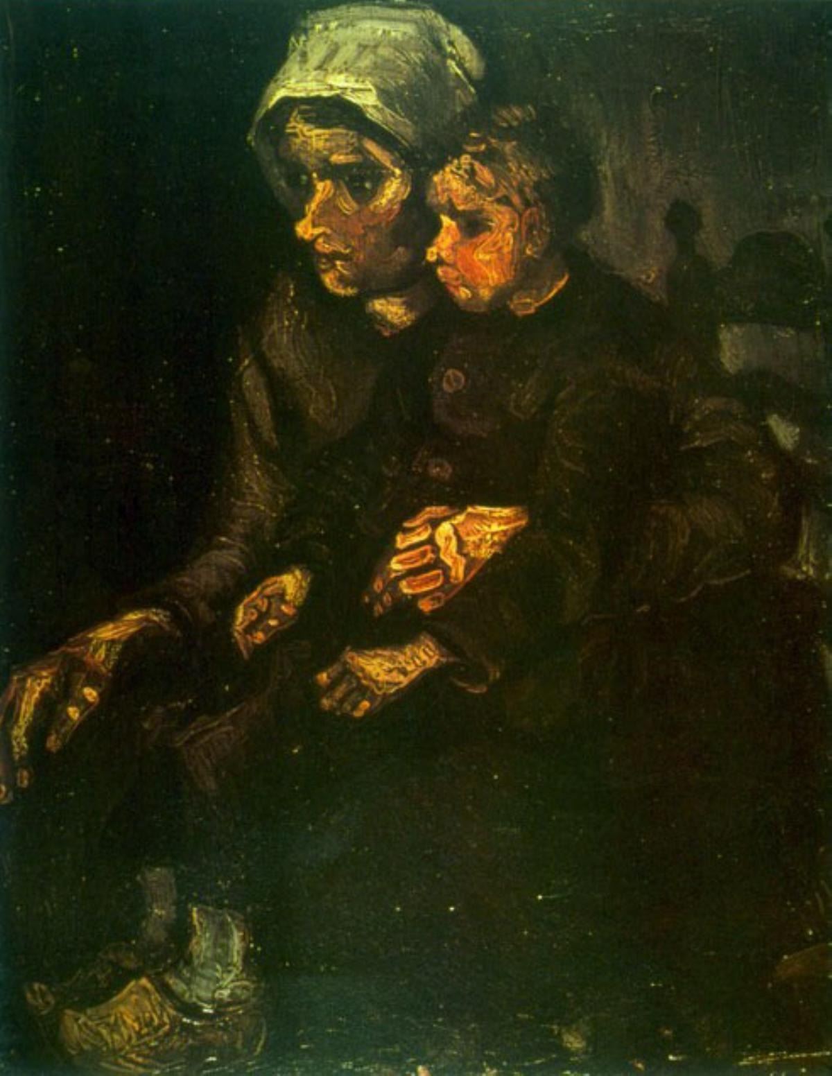Artist: Vincent Van Gogh - Title: Child on Lap - Medium: Fine Art Reproduction Giclee on Archival Canvas - Image Size: Approximately 20 inches x 15.25 inches - Unframed on Unstretched Canvas - Biography: Vincent van Gogh (born March 30, 1853, Zundert, Neth.--died July 29, 1890, Auvers-sur-Oise, near Paris, France), - Van Gogh was a Dutch painter, generally considered the greatest after Rembrandt, and one of the greatest of the Post-Impressionists. The striking color, emphatic brushwork, and contoured forms of his work powerfully influenced the current of Expressionism in modern art. Van Gogh's art became astoundingly popular after his death, especially in the late 20th century, when his work sold for record-breaking sums at auctions around the world and was featured in blockbuster touring exhibitions. In part because of his extensive published letters, van Gogh has also been mythologized in the popular imagination as the quintessential tortured artist.