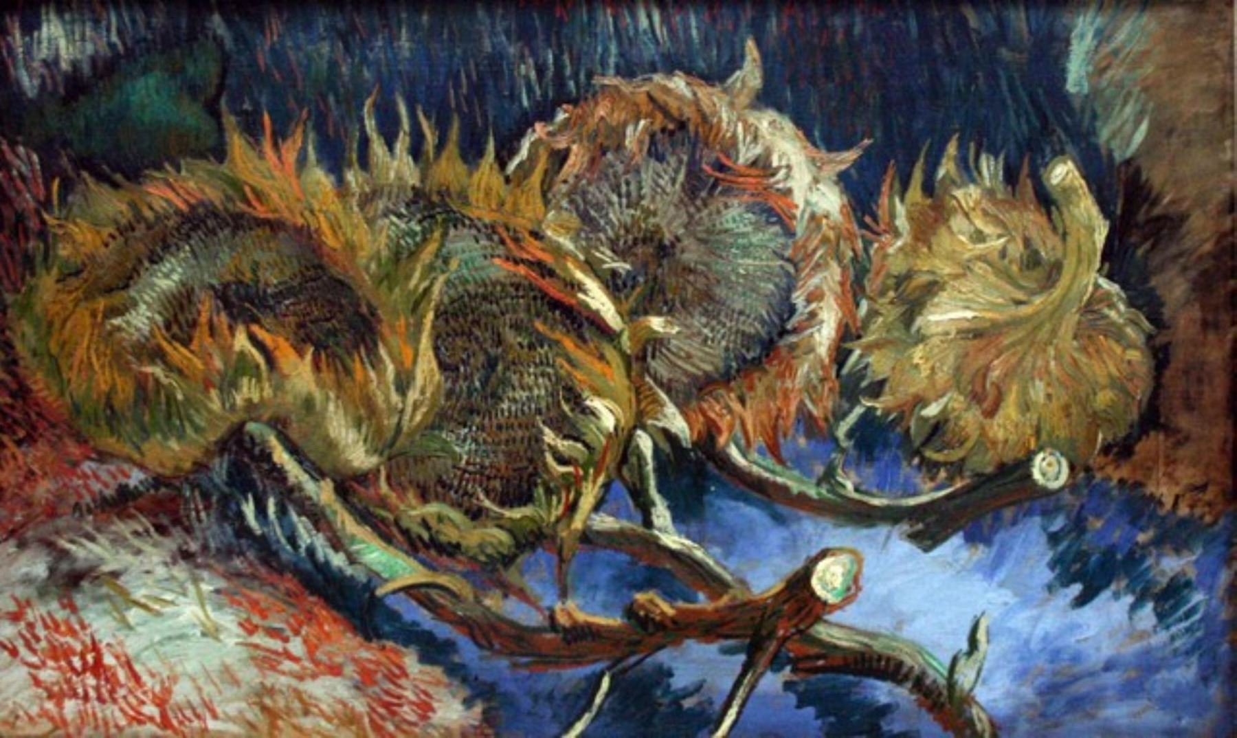 Artist: Vincent Van Gogh - Title: Four Sunflowers Gone to Seed - Medium: Fine Art Reproduction Giclee on Archival Canvas - Image Size: Approximately 19 inches x 32 inches - Unframed on Unstretched Canvas - Biography: Vincent van Gogh (born March 30, 1853, Zundert, Neth.--died July 29, 1890, Auvers-sur-Oise, near Paris, France), - Van Gogh was a Dutch painter, generally considered the greatest after Rembrandt, and one of the greatest of the Post-Impressionists. The striking color, emphatic brushwork, and contoured forms of his work powerfully influenced the current of Expressionism in modern art. Van Gogh's art became astoundingly popular after his death, especially in the late 20th century, when his work sold for record-breaking sums at auctions around the world and was featured in blockbuster touring exhibitions. In part because of his extensive published letters, van Gogh has also been mythologized in the popular imagination as the quintessential tortured artist.