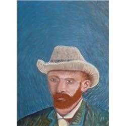 Fine Arts painter Gilles "Originallin" D'Astous (now deceased), original painting on canvas 20 high x 16 inches ready to hang with false wood frame in the back of like a portrait of the artiste painter Van Gogh maybe in that forever famous movie ; for your collection or give to a friend ;