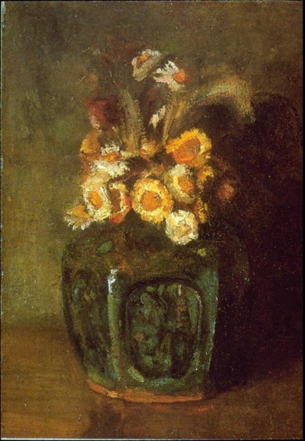 Artist: Vincent Van Gogh - Title: Ginger Jar - Medium: Fine Art Reproduction Giclee on Archival Canvas - Image Size: Approximately 20 inches x 13.75 inches - Unframed on Unstretched Canvas - Biography: Vincent van Gogh (born March 30, 1853, Zundert, Neth.--died July 29, 1890, Auvers-sur-Oise, near Paris, France), - Van Gogh was a Dutch painter, generally considered the greatest after Rembrandt, and one of the greatest of the Post-Impressionists. The striking color, emphatic brushwork, and contoured forms of his work powerfully influenced the current of Expressionism in modern art. Van Gogh's art became astoundingly popular after his death, especially in the late 20th century, when his work sold for record-breaking sums at auctions around the world and was featured in blockbuster touring exhibitions. In part because of his extensive published letters, van Gogh has also been mythologized in the popular imagination as the quintessential tortured artist.