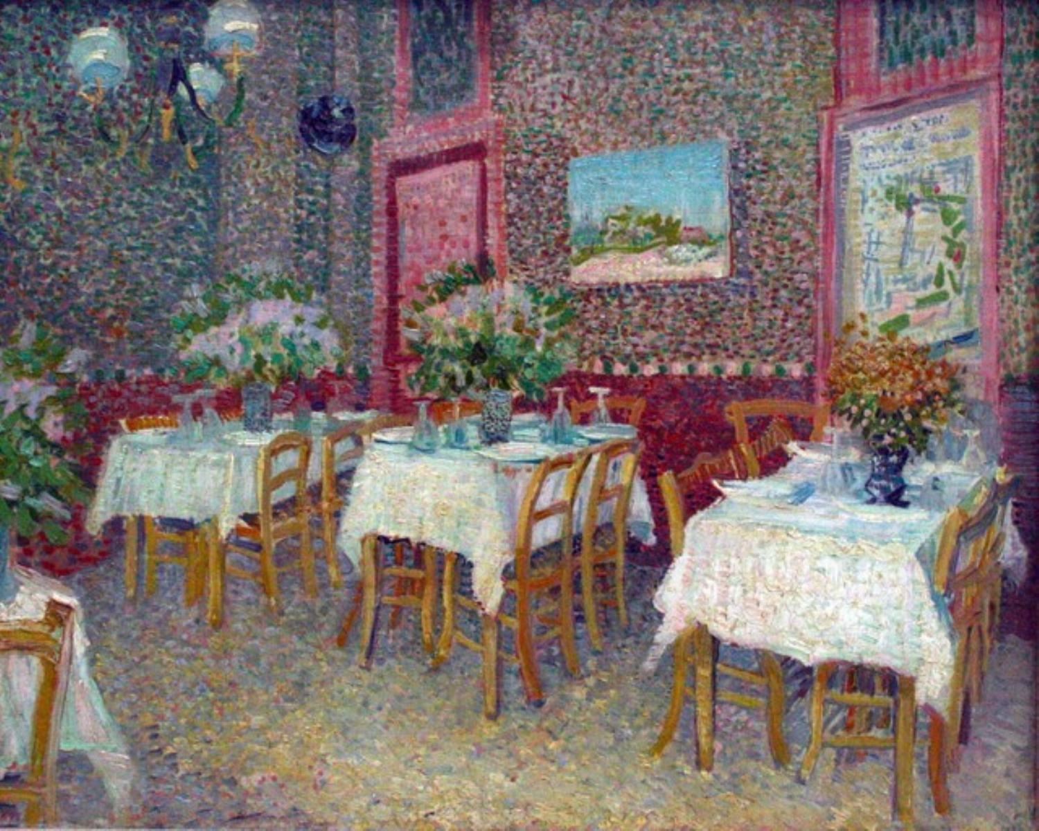 Artist: Vincent Van Gogh - Title: Interior of a Restaurant  - Medium: Fine Art Reproduction Giclee on Archival Canvas - Image Size: Approximately 16 inches x 20 inches -  Unframed on Unstretched Canvas - Biography: Vincent van Gogh (born March 30, 1853, Zundert, Neth.--died July 29, 1890, Auvers-sur-Oise, near Paris, France), - Van Gogh was a Dutch painter, generally considered the greatest after Rembrandt, and one of the greatest of the Post-Impressionists. The striking color, emphatic brushwork, and contoured forms of his work powerfully influenced the current of Expressionism in modern art. Van Gogh's art became astoundingly popular after his death, especially in the late 20th century, when his work sold for record-breaking sums at auctions around the world and was featured in blockbuster touring exhibitions. In part because of his extensive published letters, van Gogh has also been mythologized in the popular imagination as the quintessential tortured artist.