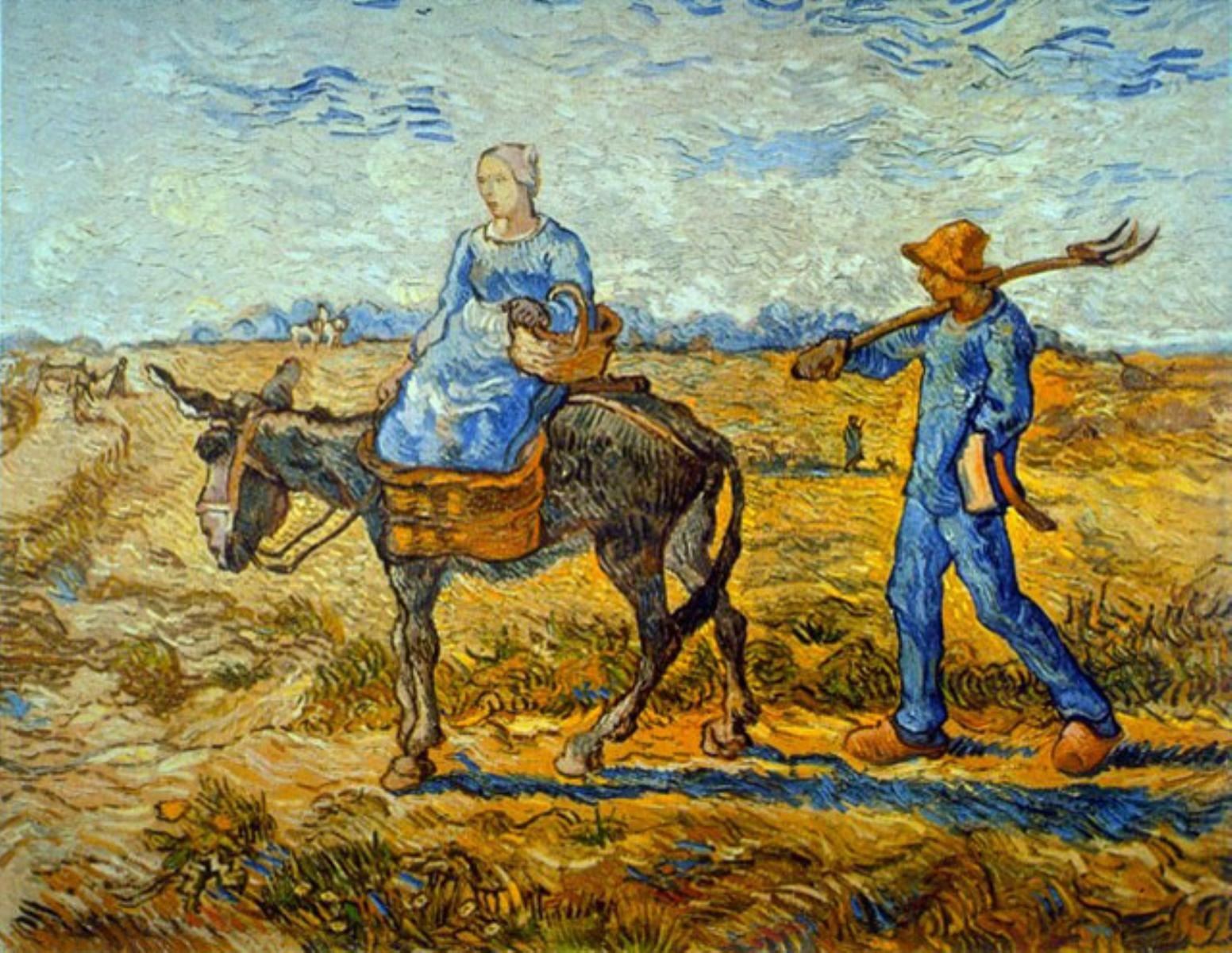 Artist: Vincent Van Gogh - Title: Morning - Medium: Fine Art Reproduction Giclee on Archival Canvas - Image Size: Approximately 15.5 inches x 20 inches - Unframed on Unstretched Canvas - Biography: Vincent van Gogh (born March 30, 1853, Zundert, Neth.--died July 29, 1890, Auvers-sur-Oise, near Paris, France), - Van Gogh was a Dutch painter, generally considered the greatest after Rembrandt, and one of the greatest of the Post-Impressionists. The striking color, emphatic brushwork, and contoured forms of his work powerfully influenced the current of Expressionism in modern art. Van Gogh's art became astoundingly popular after his death, especially in the late 20th century, when his work sold for record-breaking sums at auctions around the world and was featured in blockbuster touring exhibitions. In part because of his extensive published letters, van Gogh has also been mythologized in the popular imagination as the quintessential tortured artist.