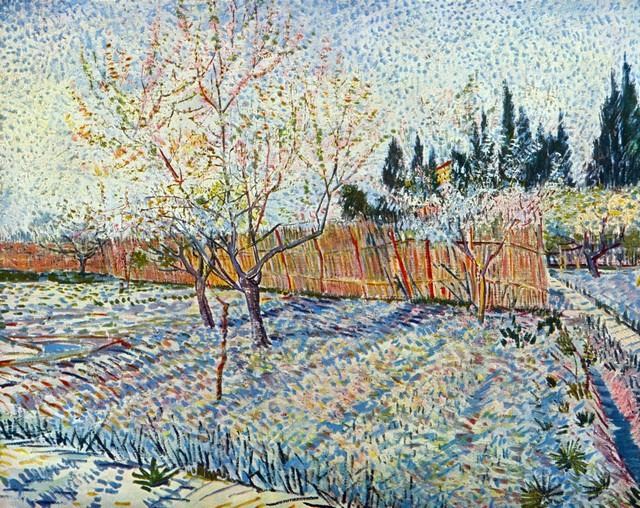Artist: Vincent Van Gogh - Title: Orchard with Cypress - Medium: Fine Art Reproduction Giclee on Archival Canvas - Image Size: Approximately 25.5 inches x 32 inches - Unframed on Unstretched Canvas - Biography: Vincent van Gogh (born March 30, 1853, Zundert, Neth.--died July 29, 1890, Auvers-sur-Oise, near Paris, France), - Van Gogh was a Dutch painter, generally considered the greatest after Rembrandt, and one of the greatest of the Post-Impressionists. The striking color, emphatic brushwork, and contoured forms of his work powerfully influenced the current of Expressionism in modern art. Van Gogh's art became astoundingly popular after his death, especially in the late 20th century, when his work sold for record-breaking sums at auctions around the world and was featured in blockbuster touring exhibitions. In part because of his extensive published letters, van Gogh has also been mythologized in the popular imagination as the quintessential tortured artist.