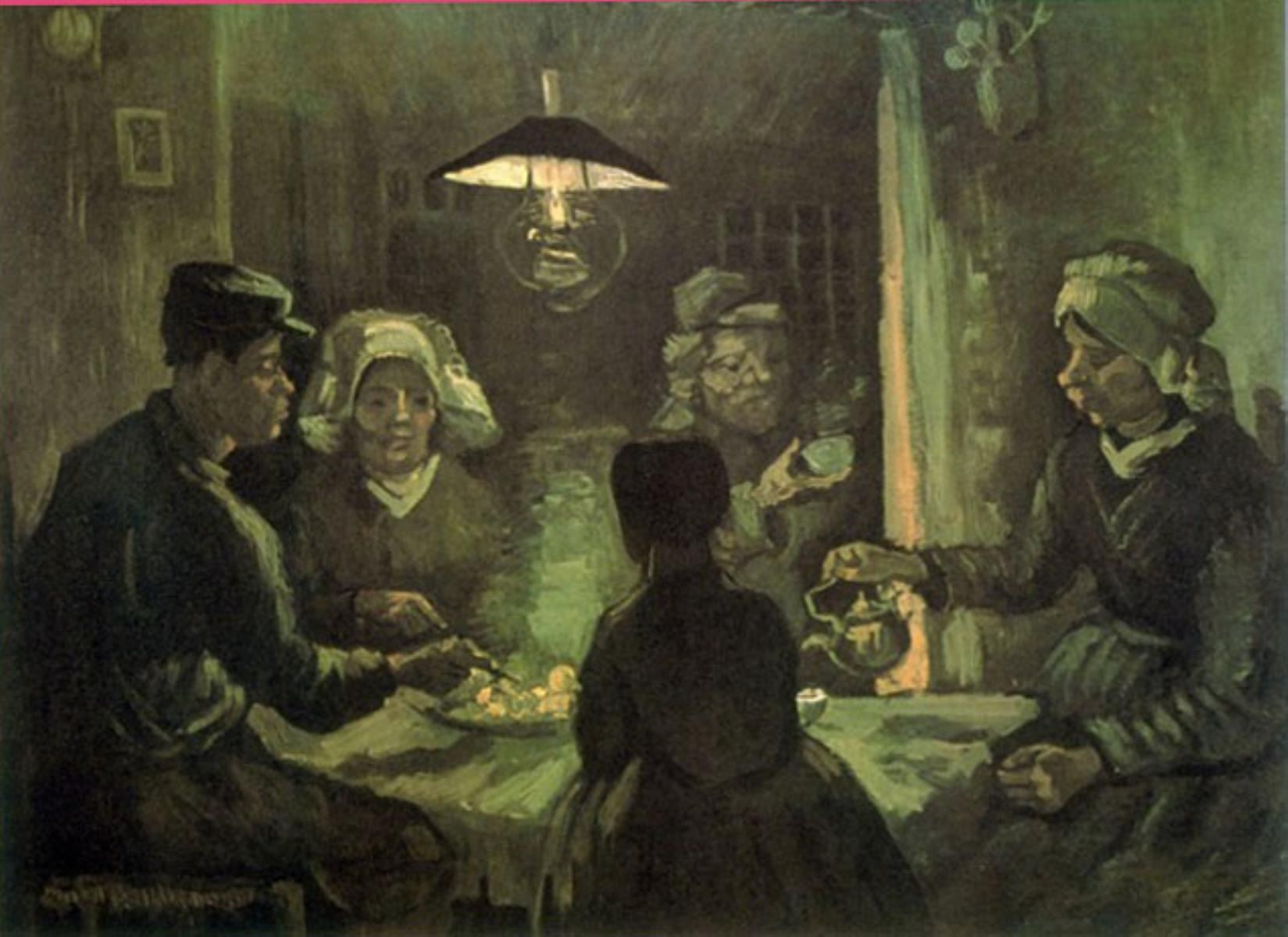 Artist: Vincent Van Gogh - Title: Potato Ear - Medium: Fine Art Reproduction Giclee on Archival Canvas - Image Size: Approximately 23 inches x 32 inches - Unframed on Unstretched Canvas - Biography: Vincent van Gogh (born March 30, 1853, Zundert, Neth.--died July 29, 1890, Auvers-sur-Oise, near Paris, France), - Van Gogh was a Dutch painter, generally considered the greatest after Rembrandt, and one of the greatest of the Post-Impressionists. The striking color, emphatic brushwork, and contoured forms of his work powerfully influenced the current of Expressionism in modern art. Van Gogh's art became astoundingly popular after his death, especially in the late 20th century, when his work sold for record-breaking sums at auctions around the world and was featured in blockbuster touring exhibitions. In part because of his extensive published letters, van Gogh has also been mythologized in the popular imagination as the quintessential tortured artist.