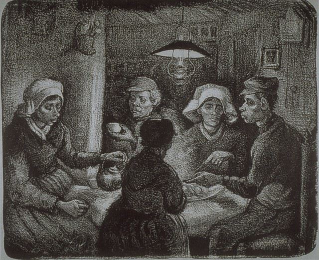 Artist: Vincent Van Gogh - Title: Potato Eaters - Medium: Fine Art Reproduction Giclee on Archival Canvas - Image Size: Approximately 16.25 inches x 20 inches - Unframed on Unstretched Canvas - Biography: Vincent van Gogh (born March 30, 1853, Zundert, Neth.--died July 29, 1890, Auvers-sur-Oise, near Paris, France), - Van Gogh was a Dutch painter, generally considered the greatest after Rembrandt, and one of the greatest of the Post-Impressionists. The striking color, emphatic brushwork, and contoured forms of his work powerfully influenced the current of Expressionism in modern art. Van Gogh's art became astoundingly popular after his death, especially in the late 20th century, when his work sold for record-breaking sums at auctions around the world and was featured in blockbuster touring exhibitions. In part because of his extensive published letters, van Gogh has also been mythologized in the popular imagination as the quintessential tortured artist.
