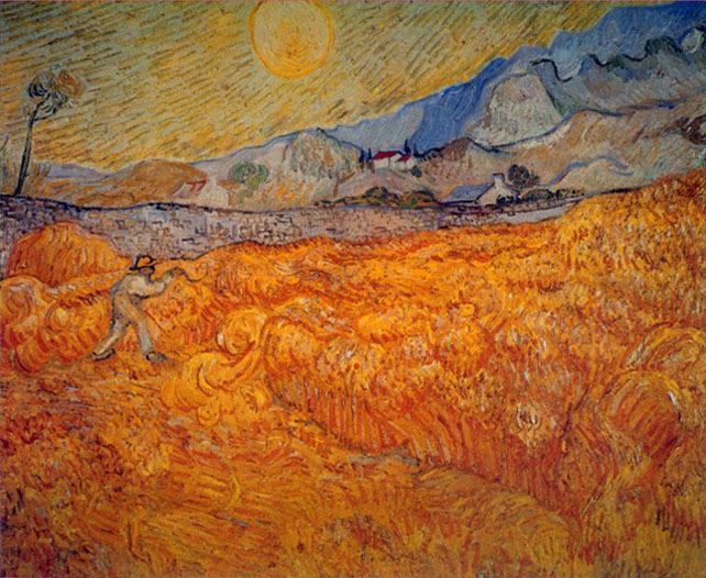 Artist: Vincent Van Gogh - Title: Reaper - Medium: Fine Art Reproduction Giclee on Archival Canvas - Image Size: Approximately 16.25 inches x 20 inches - Unframed on Unstretched Canvas - Biography: Vincent van Gogh (born March 30, 1853, Zundert, Neth.--died July 29, 1890, Auvers-sur-Oise, near Paris, France), - Van Gogh was a Dutch painter, generally considered the greatest after Rembrandt, and one of the greatest of the Post-Impressionists. The striking color, emphatic brushwork, and contoured forms of his work powerfully influenced the current of Expressionism in modern art. Van Gogh's art became astoundingly popular after his death, especially in the late 20th century, when his work sold for record-breaking sums at auctions around the world and was featured in blockbuster touring exhibitions. In part because of his extensive published letters, van Gogh has also been mythologized in the popular imagination as the quintessential tortured artist.