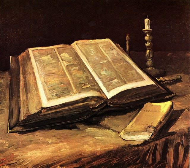 Artist: Vincent Van Gogh - Title: Still Life with Bible - Medium: Fine Art Reproduction Giclee on Archival Canvas - Image Size: Approximately 28.25 inches x 32 inches - Unframed on Unstretched Canvas - Biography: Vincent van Gogh (born March 30, 1853, Zundert, Neth.--died July 29, 1890, Auvers-sur-Oise, near Paris, France), - Van Gogh was a Dutch painter, generally considered the greatest after Rembrandt, and one of the greatest of the Post-Impressionists. The striking color, emphatic brushwork, and contoured forms of his work powerfully influenced the current of Expressionism in modern art. Van Gogh's art became astoundingly popular after his death, especially in the late 20th century, when his work sold for record-breaking sums at auctions around the world and was featured in blockbuster touring exhibitions. In part because of his extensive published letters, van Gogh has also been mythologized in the popular imagination as the quintessential tortured artist.