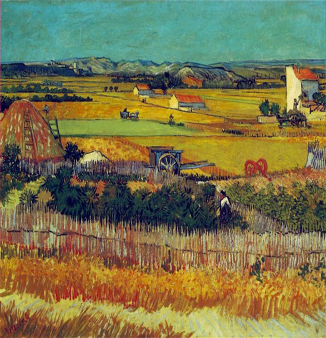 Artist: Vincent Van Gogh - Title: The Harvest, Arles - Medium: Fine Art Reproduction Giclee on Archival Canvas - Image Size: Approximately 26.5 inches x 32 inches - Unframed on Unstretched Canvas - Biography: Vincent van Gogh (born March 30, 1853, Zundert, Neth.--died July 29, 1890, Auvers-sur-Oise, near Paris, France), - Van Gogh was a Dutch painter, generally considered the greatest after Rembrandt, and one of the greatest of the Post-Impressionists. The striking color, emphatic brushwork, and contoured forms of his work powerfully influenced the current of Expressionism in modern art. Van Gogh's art became astoundingly popular after his death, especially in the late 20th century, when his work sold for record-breaking sums at auctions around the world and was featured in blockbuster touring exhibitions. In part because of his extensive published letters, van Gogh has also been mythologized in the popular imagination as the quintessential tortured artist.