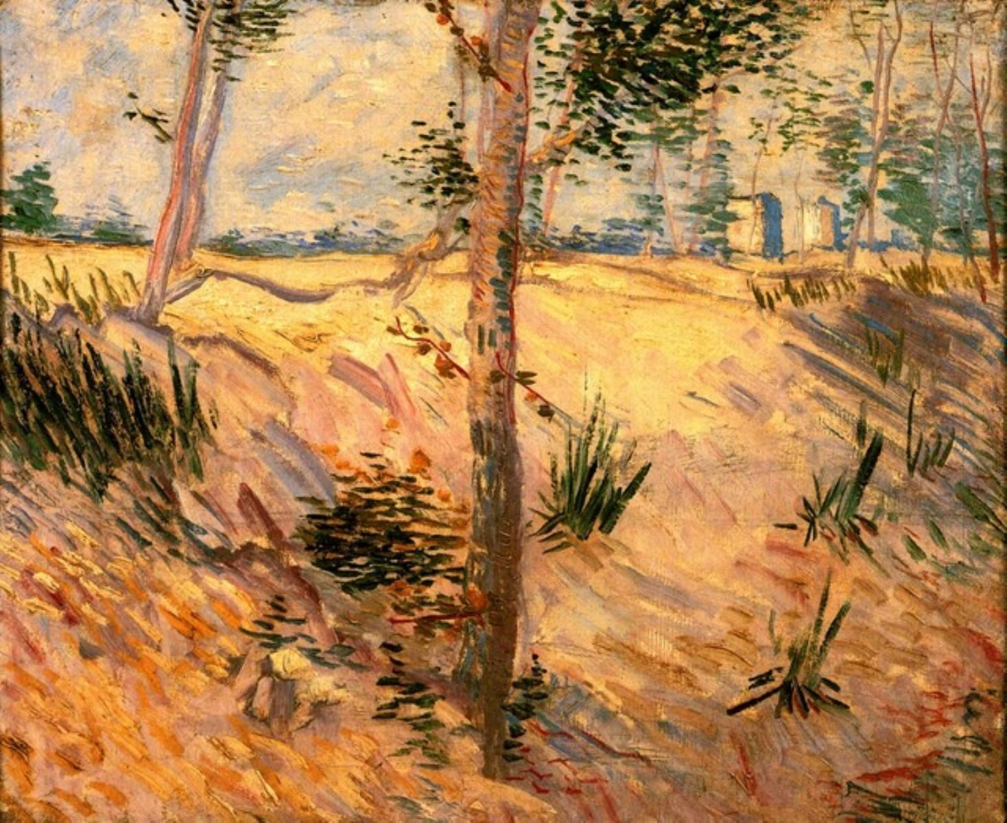Artist: Vincent Van Gogh - Title: Trees in a Field on a Sunny Day - Medium: Fine Art Reproduction Giclee on Archival Canvas - Image Size: Approximately 26.5 inches x 32 inches - Unframed on Unstretched Canvas - Biography: Vincent van Gogh (born March 30, 1853, Zundert, Neth.--died July 29, 1890, Auvers-sur-Oise, near Paris, France), - Van Gogh was a Dutch painter, generally considered the greatest after Rembrandt, and one of the greatest of the Post-Impressionists. The striking color, emphatic brushwork, and contoured forms of his work powerfully influenced the current of Expressionism in modern art. Van Gogh's art became astoundingly popular after his death, especially in the late 20th century, when his work sold for record-breaking sums at auctions around the world and was featured in blockbuster touring exhibitions. In part because of his extensive published letters, van Gogh has also been mythologized in the popular imagination as the quintessential tortured artist.