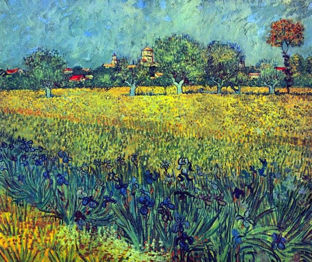 Artist: Vincent Van Gogh - Title: View of Arles with Irises - Medium: Fine Art Reproduction Giclee on Archival Canvas - Image Size: Approximately 26.75 inches x 32 inches - Unframed on Unstretched Canvas - Biography: Vincent van Gogh (born March 30, 1853, Zundert, Neth.--died July 29, 1890, Auvers-sur-Oise, near Paris, France), - Van Gogh was a Dutch painter, generally considered the greatest after Rembrandt, and one of the greatest of the Post-Impressionists. The striking color, emphatic brushwork, and contoured forms of his work powerfully influenced the current of Expressionism in modern art. Van Gogh's art became astoundingly popular after his death, especially in the late 20th century, when his work sold for record-breaking sums at auctions around the world and was featured in blockbuster touring exhibitions. In part because of his extensive published letters, van Gogh has also been mythologized in the popular imagination as the quintessential tortured artist.