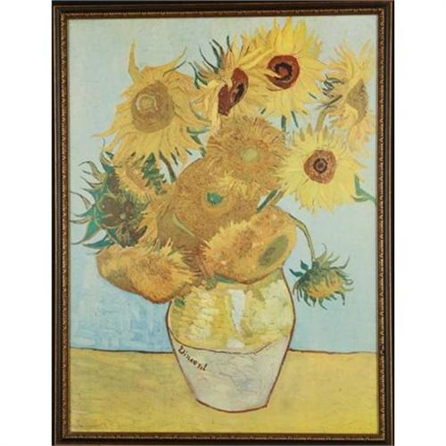 <table width="100%" border="0" cellspacing="0" cellpadding="4"><tr><td><em> </em></td></tr><tr> <td width="100%"> This colorful and lively print of Vincent Van Gogh?s Vase of Twelve Sunflowers is full of vibrant hues. The sunflowers are bursting with bright yellows and oranges, while the sky blue of the background subtly compliments them. This print is in good condition and depicts one of Van Gogh?s most well-known paintings. The print is on panel and is framed in a slender brown and gold colored frame that compliments the siennas and brightens the yellows. The picture itself measures 23.75? x 17.75? but is brought to a total size of 25.25? x 19.5? when including the frame. The bold line and confident brushstrokes of the original are seen in clear detail in this print and the signature is seen on the vase at the bottom of the print. </td></tr><tr> <td> </td></tr><tr> <td>Reference #: 9103</td></tr><tr><td>Condition:very good</td></tr><tr><td>Year:0000</td></tr><tr><td>Height:23.75</td></tr><tr><td>Width:17.75</td></tr><tr><td>Title:Van Gogh, Vincent - Vase with Twelve</td></tr><tr><td>Location:Grosse Pointe Park, MI. 48230, USA</td></tr></table>