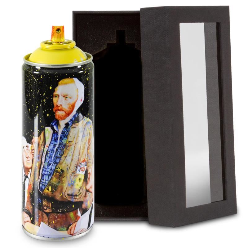"Van Gogh (Yellow)" is a numbered limited edition hand painted spray can by Mr Brainwash. This piece bears the plate signature of the artist and comes from his 2020 Classic Spray Can Collection. Measures approximately 2.5" x 7.5".