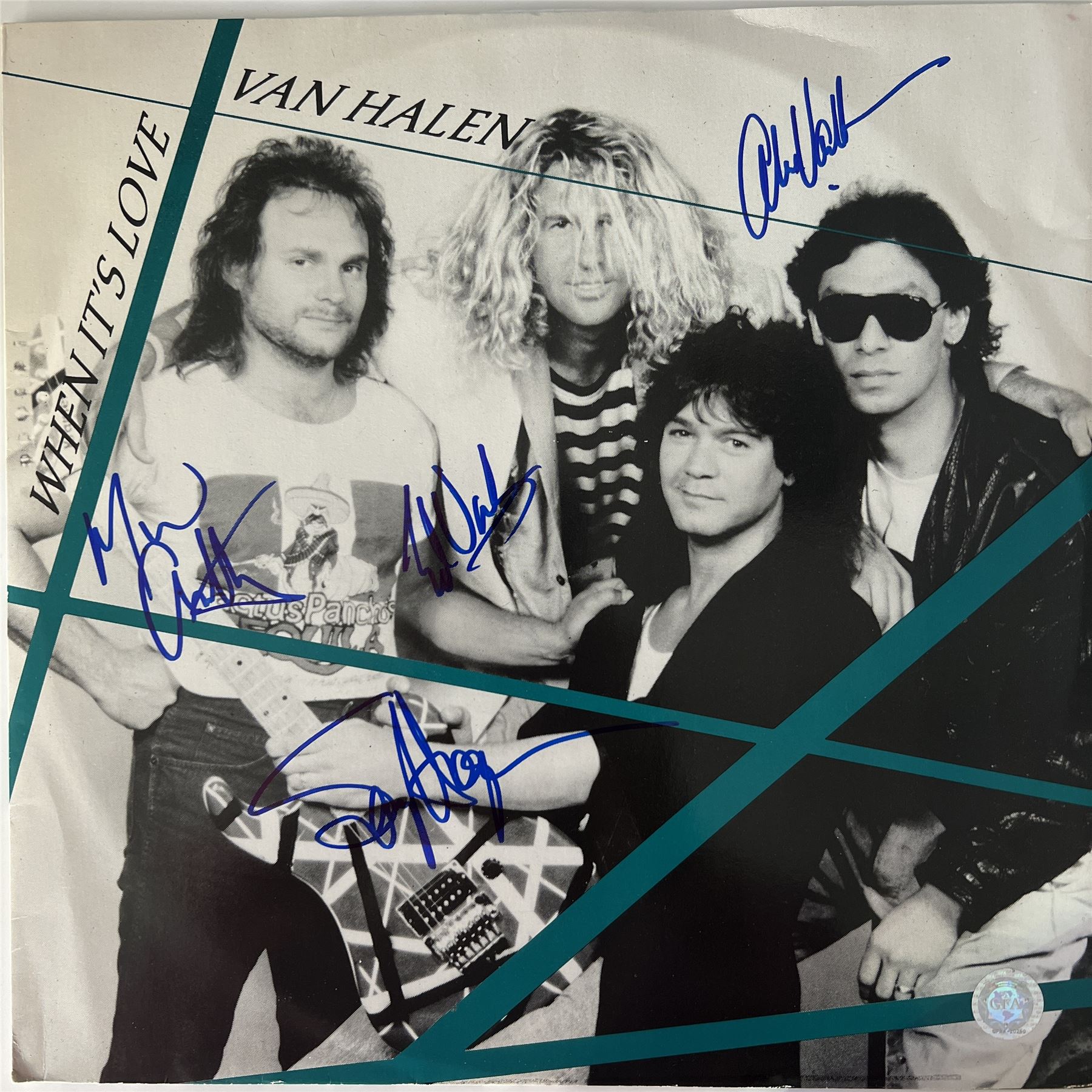 Van Halen 1988 "When it's Love" album autographed by Sammy Hagar, Edward Van Halen, Alex Van Halen and Michael Anthony.