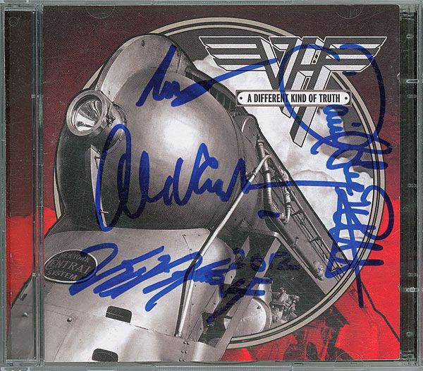 A Different Kind of Truth deluxe CD/DVD signed on the front cover of the booklet in blue felt tip by Eddie Van Halen, Alex Van Halen, Wolfgang Van Halen, and David Lee Roth. In fine condition. The CD is included.
