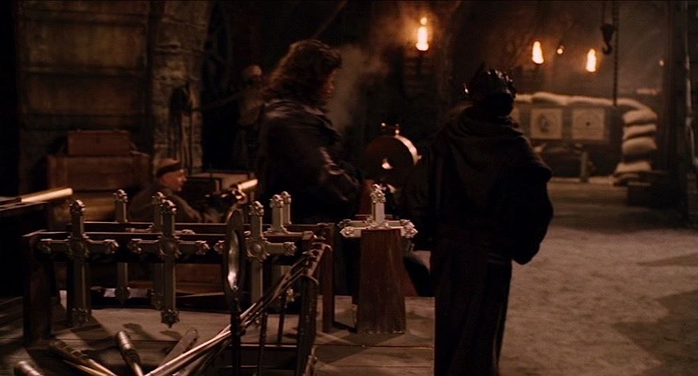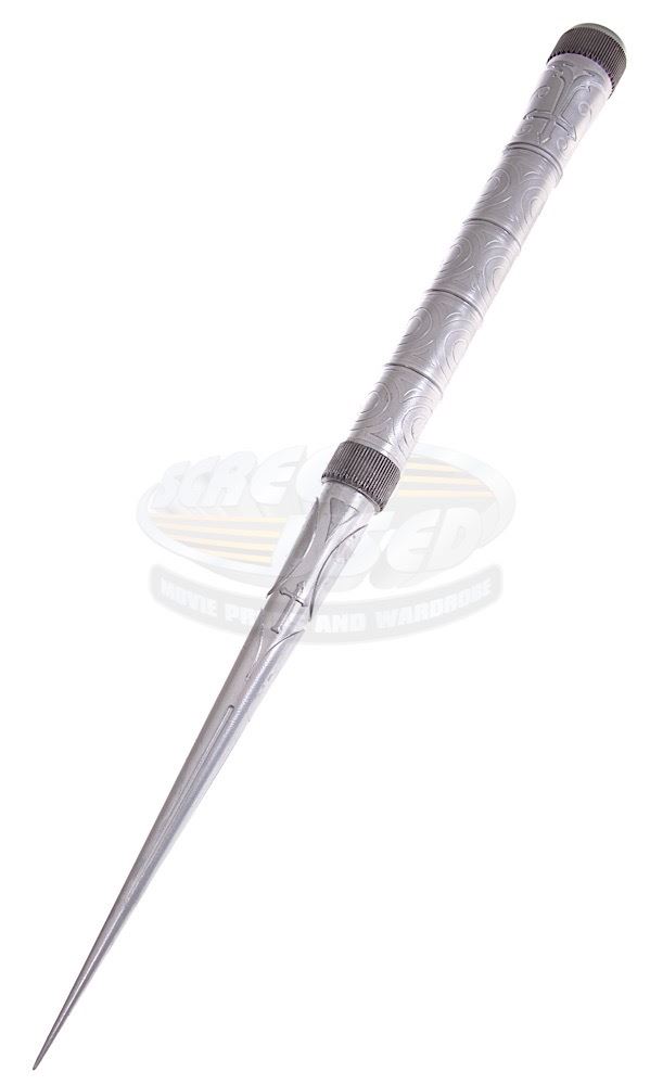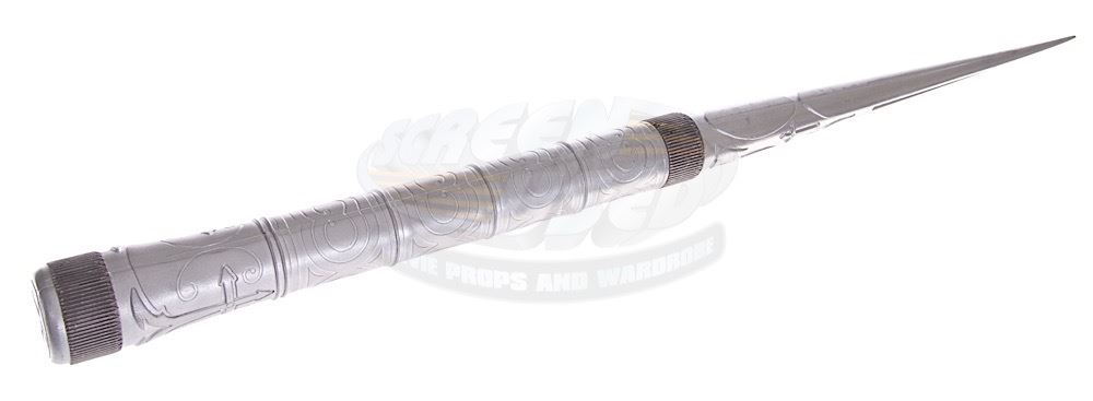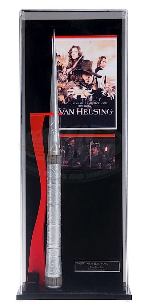 (Universal Pictures, 2004) This large stunt stake was custom-made for filming and features simulated engravings the entire length. Made of hard rubber this stake measures 22.75" long. This style stake can be seen on screen in several scenes of the film. The stake is presented in a custom display that measures 25" tall x 10" wide x 5" deep.