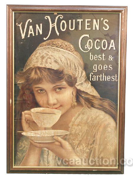 Van Houten's Cocoa Cardboard Advertisement, in wood frame - 15" x 22"