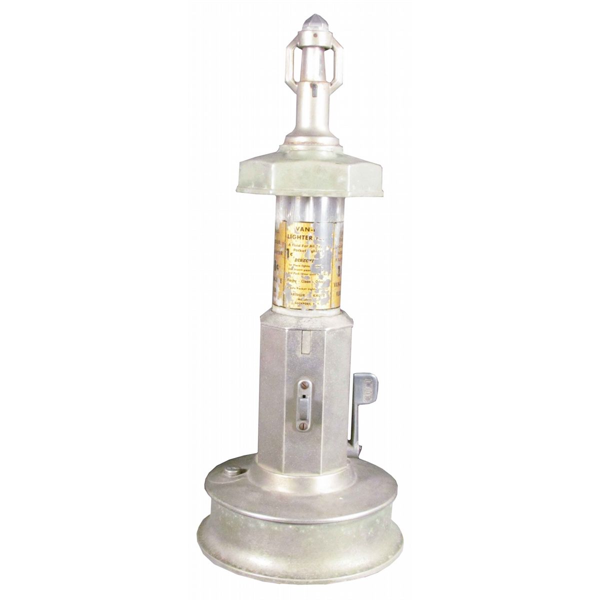 Van-Lite Coin Operated Lighter Fluid Dispenser. Nickel worn otherwise good condition. 19 inches tall.