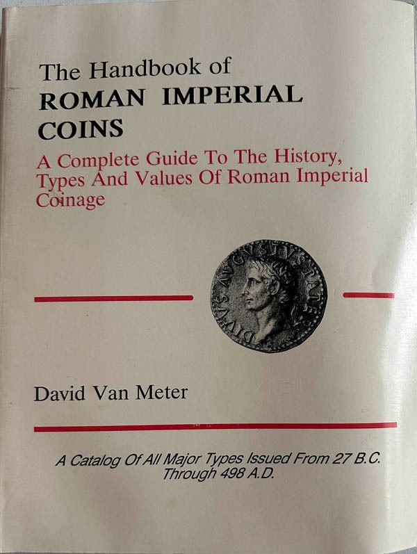 Van Meter, David, Handbook of Roman Imperial Coins: A Complete Guide to the History, Types and Values of Roman Imperial Coinage, published 1991, soft bound 334 pages with black and white illustrations. Estimate $250 - 350.