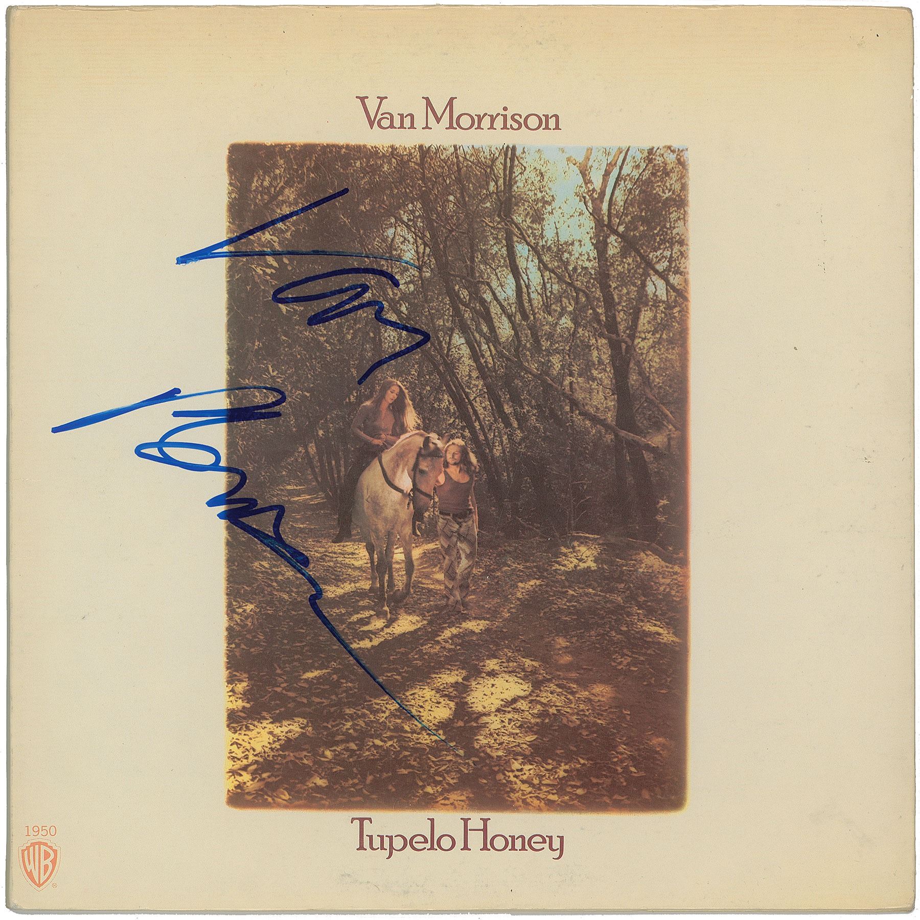 Tupelo Honey album signed on the front cover in blue felt tip by Van Morrison. In fine condition. The record is included.