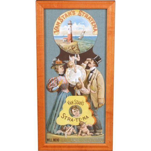 Van Stan's St Ratena embossed Die-Cut cardboard Display shows angels- framed 8" x 16" has some repair
