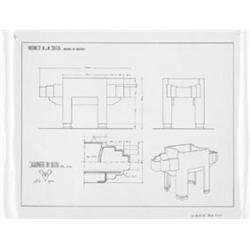 They concern a bookcase, a music-cabinet, a flowerstand and a socle for the living-room, as well as a radiator-grating for the dining room. H. Van de Velde designed the residence for Georges Cohen in 1927 and was also charged with its entire interior decoration.