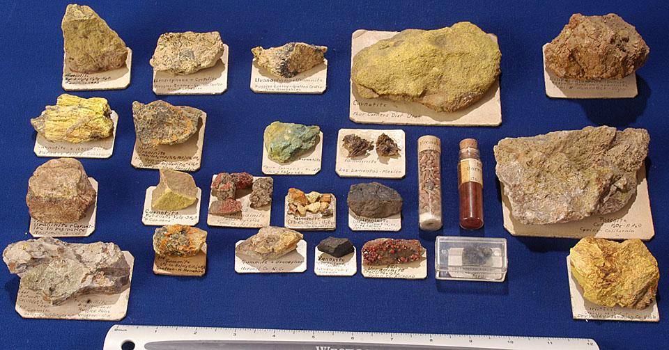 Lot of 24 includes Vanadium - Az, Co, Mex - Uraninite, Autenite, Carnotite, Gummite (NC), and Uranophane (NH).