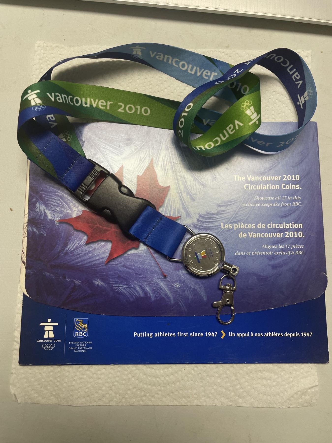 Vancouver 2010 Circulation Coins, Lanyard and 2010 Canada VANCOUVER OLYMPIC Color $1 Dollar Inukshuk LUCKY LOONIE