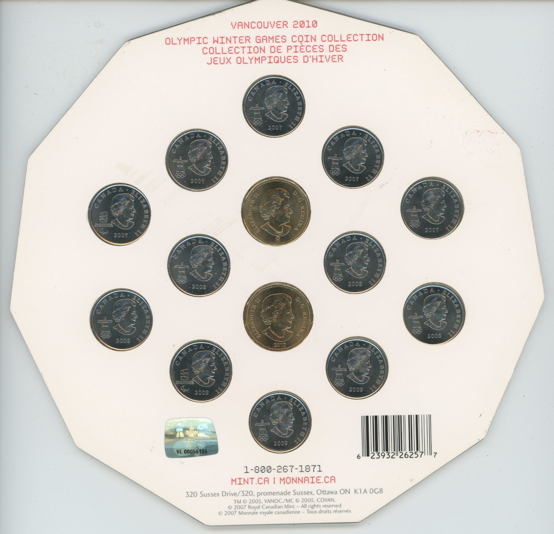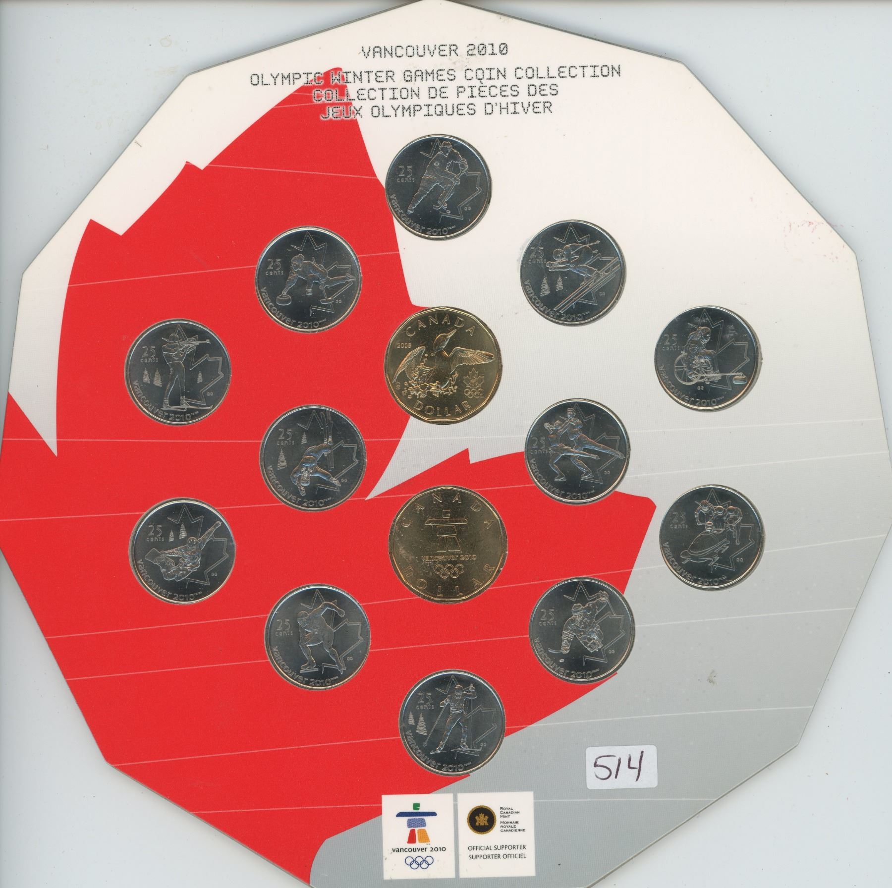 Vancouver 2010 Olympic Winter Games Coin Collection 12-quarters & 2 loonies,1-olympic set 2010