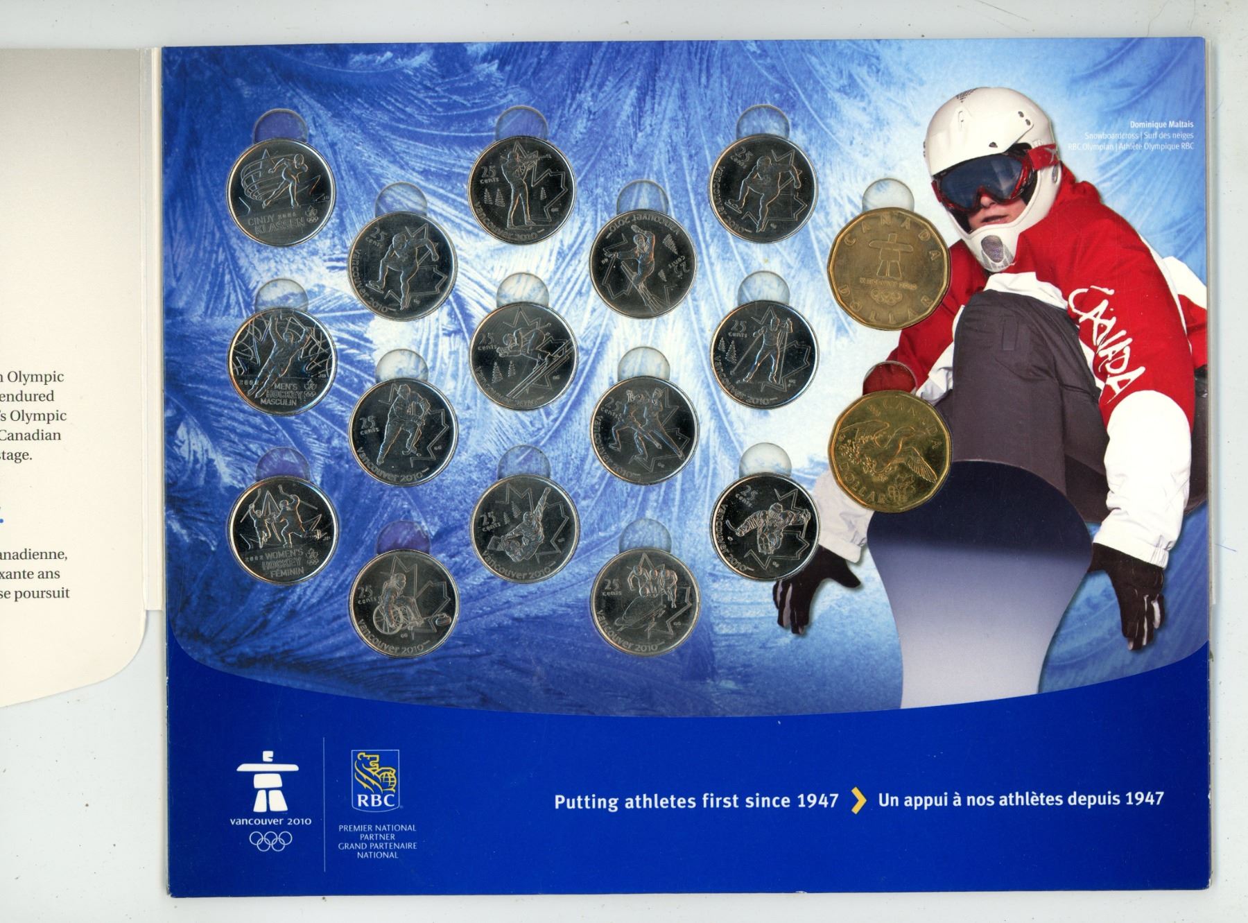 Vancouver 2010 Winter Olympic set of 15 Olympic 25 Cents and 2 Olympic Loonies. Housed in its original RCM folder.