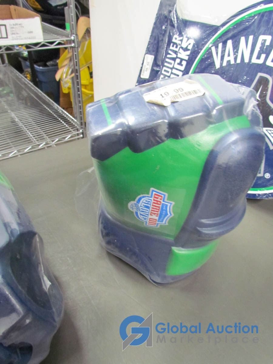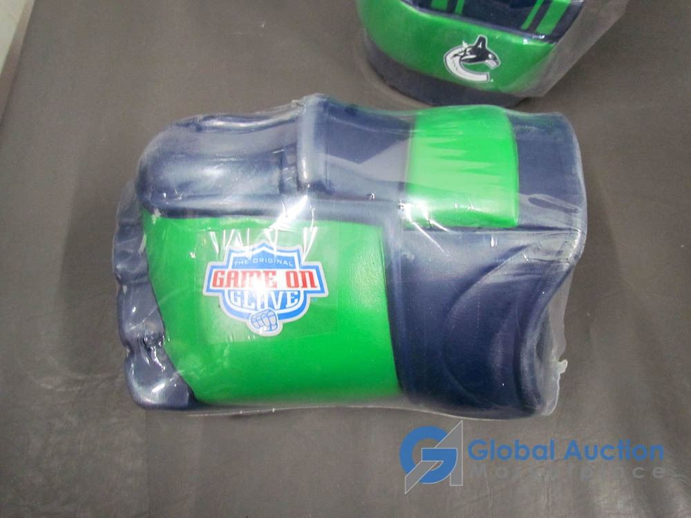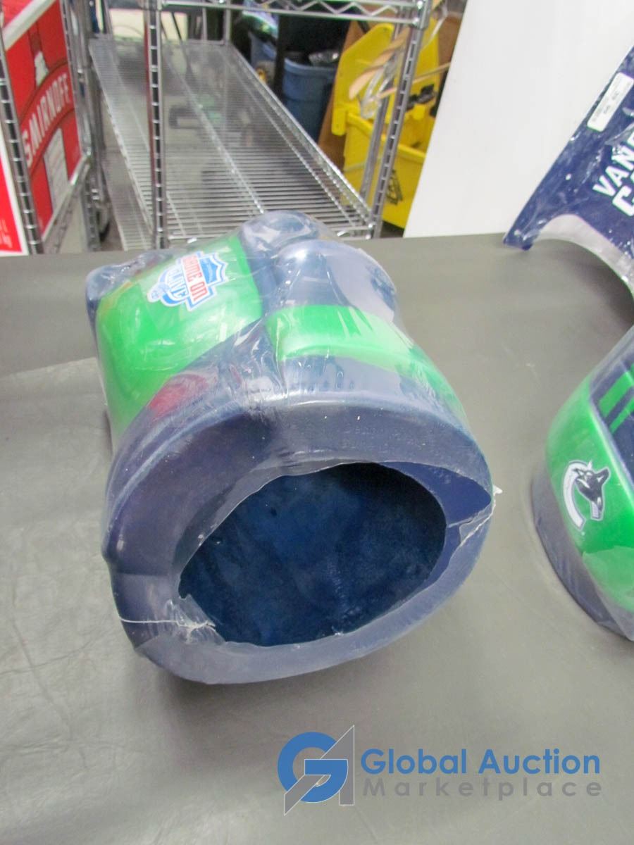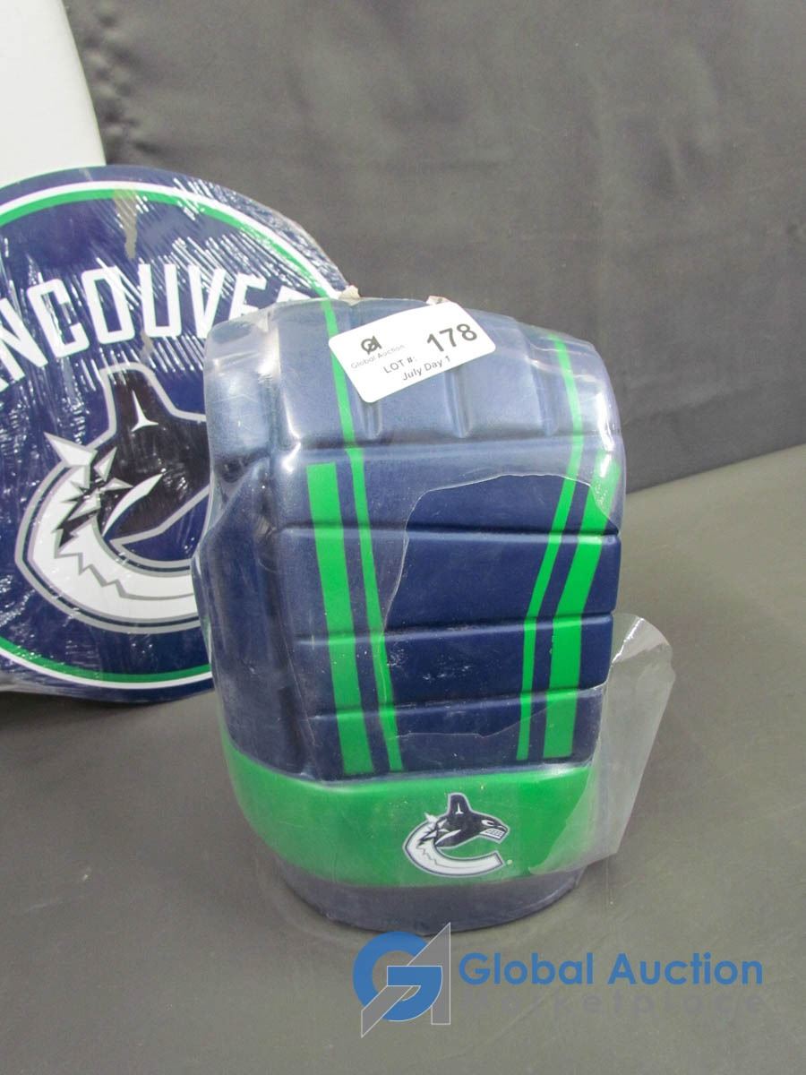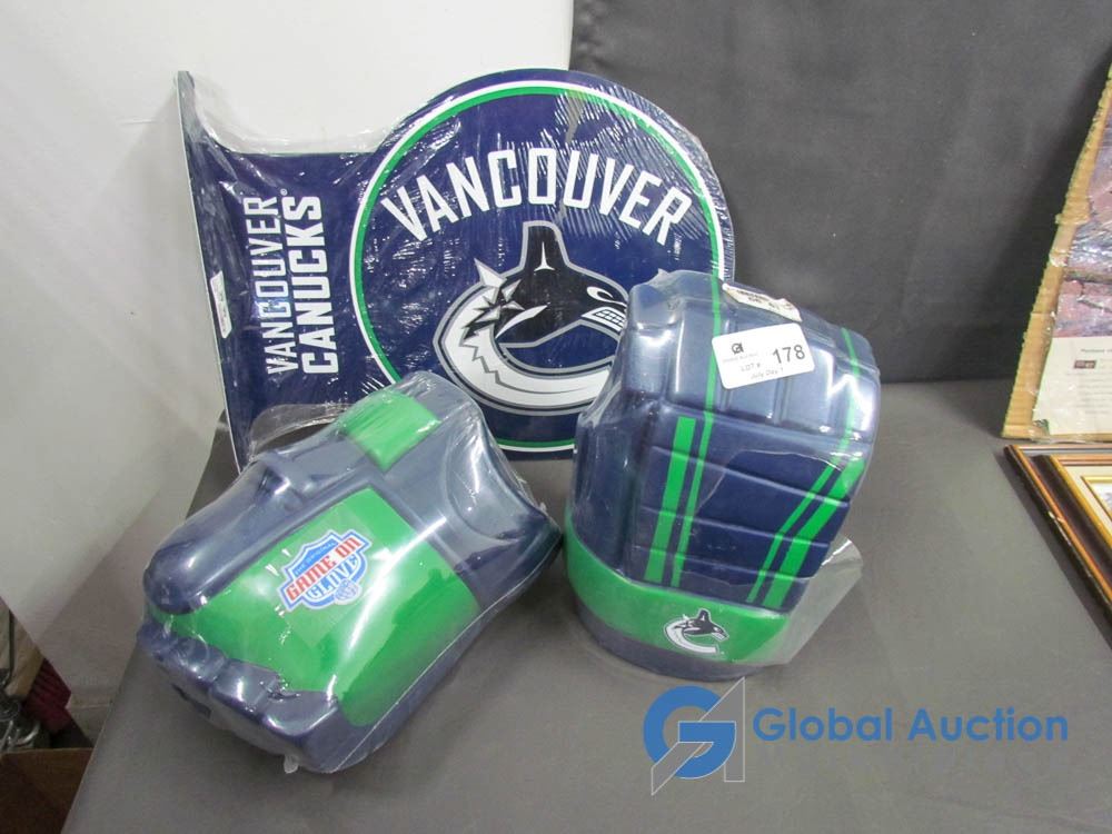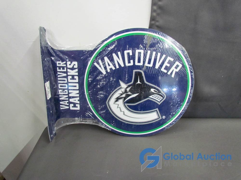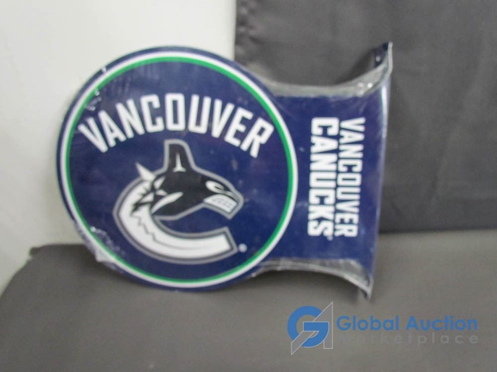 Vancouver Canucks Flanged Tin Sign and (2) Foam Gloves