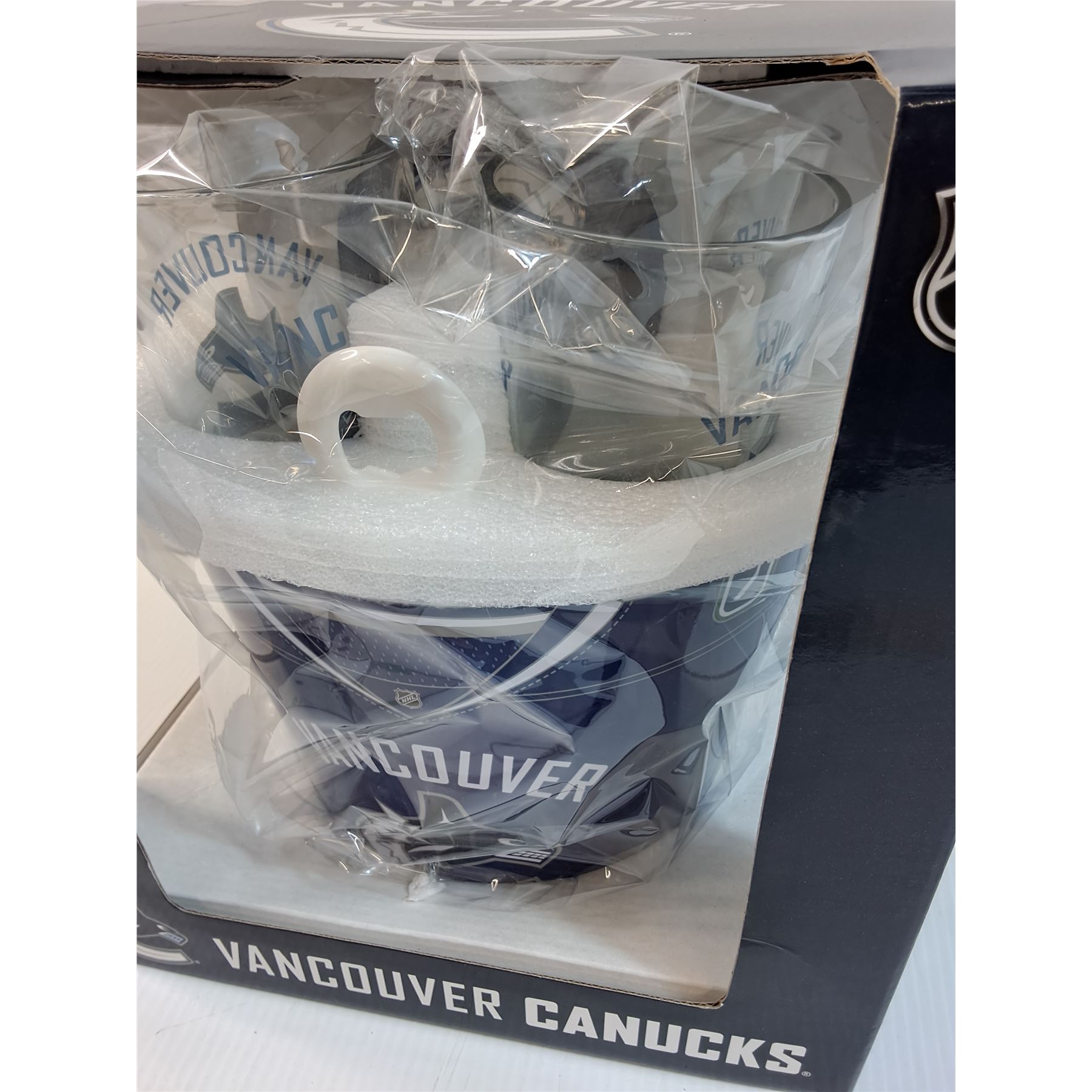 Vancouver Canucks Hockey Ice Bucket & Glasses Set in Box - NOS