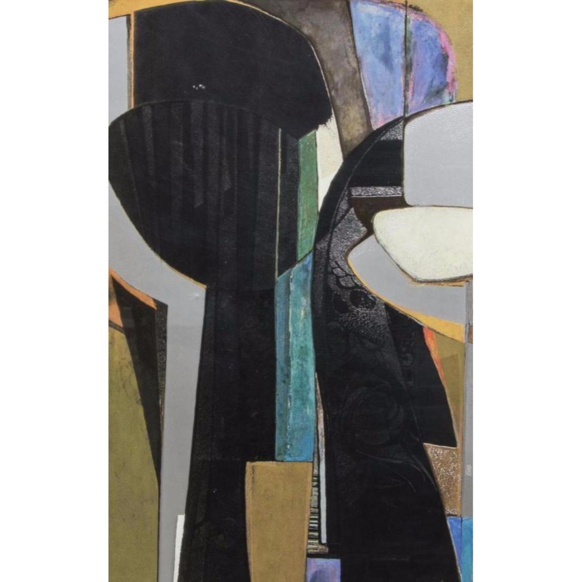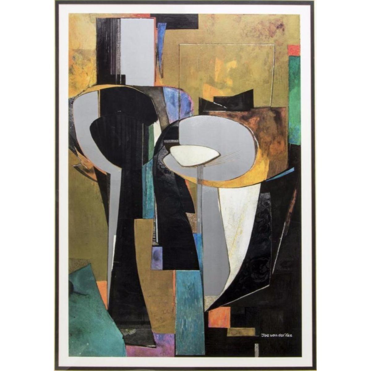 Large framed modern abstract print, "Silver Columns", signed lower right Ysa Vander Zee (Duth, 20th c.), sight 42"h, 29"w, overall: 54"h, 40"w