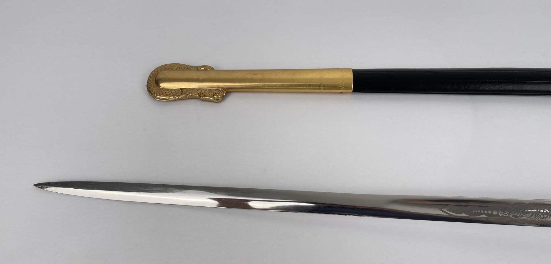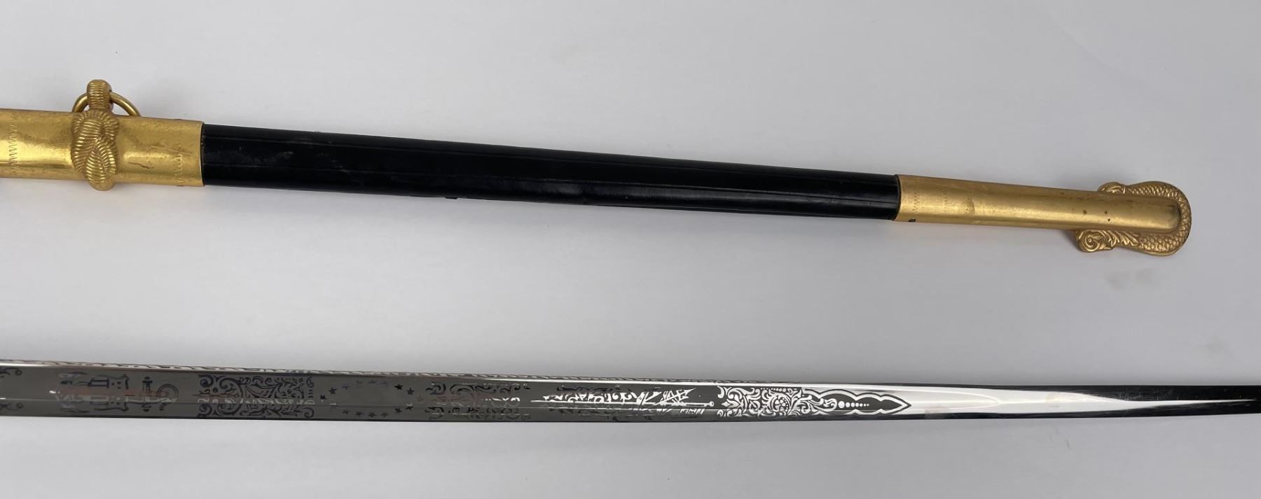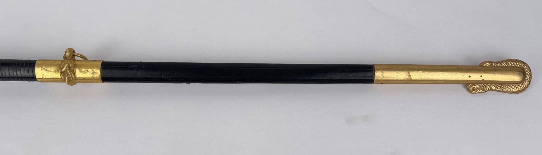 Nice sword and scabbard. Someone has covered part of the scabbard in electrical tape as shown. May be damaged in that area.