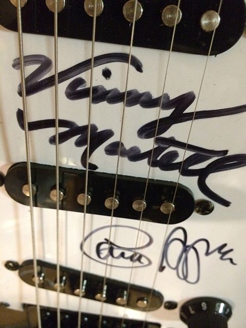 To Benefit St. Jude Children's Research Hospital; Squier Fender Black and White Guitar signed by the Rock N Roll Band, Vanilla Fudge! Autograph Signatures include Vinny Martell and Mark Stein. 4 signatures total on guitar, comes with a certificate of authenticity. This guitar is being auctioned to benefit St. Jude Children's Research Hospital. The importance of today's auction is to benefit St. Jude Children's Research Hospital in memorance of Peter W. Chapulis, in memory of him and all dads! We have been collecting for St. Jude Children's Research Hospital since the passing of Peter W. Chapulis. We are proud to announce that we have raised $66,425.00 to date for St. Jude Children's Research Hospital! We thank all of our loyal customers for helping to make this happen!
