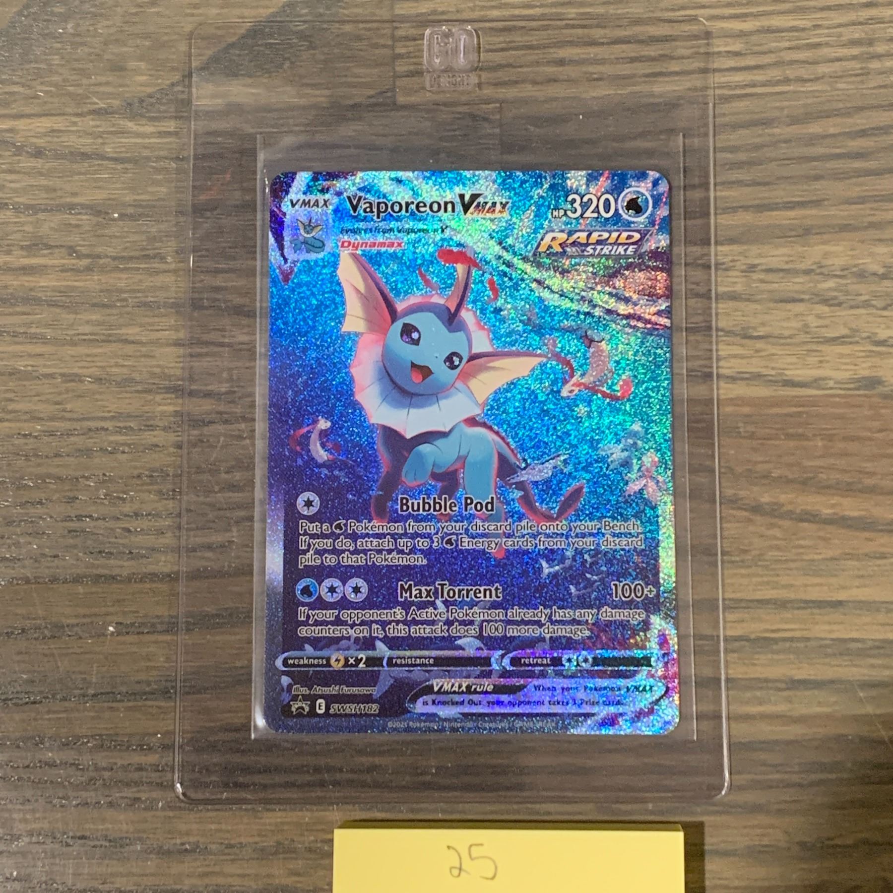 Vaporeon VMAX #SWSH182 Promo Pokemon card. We are a veteran owned company. Please look at the pictures carefully to determine what you believe the condition of collecitible is. We are currently accepting consignments. Email us a aeronhouse1994@gmail.com or visit our website, www.ahauctionhouse.com. We are currently seeking Star Wars related consignments.