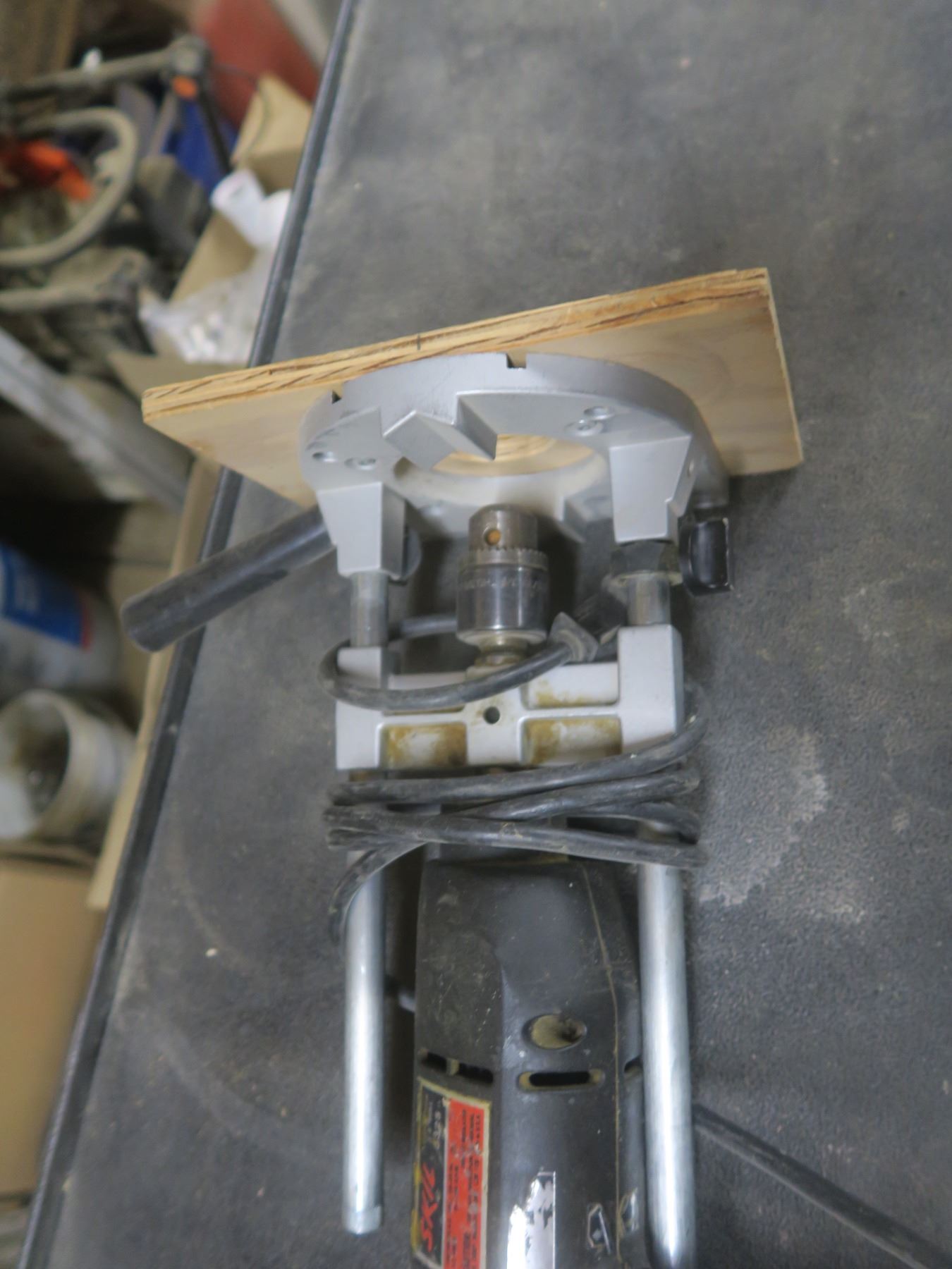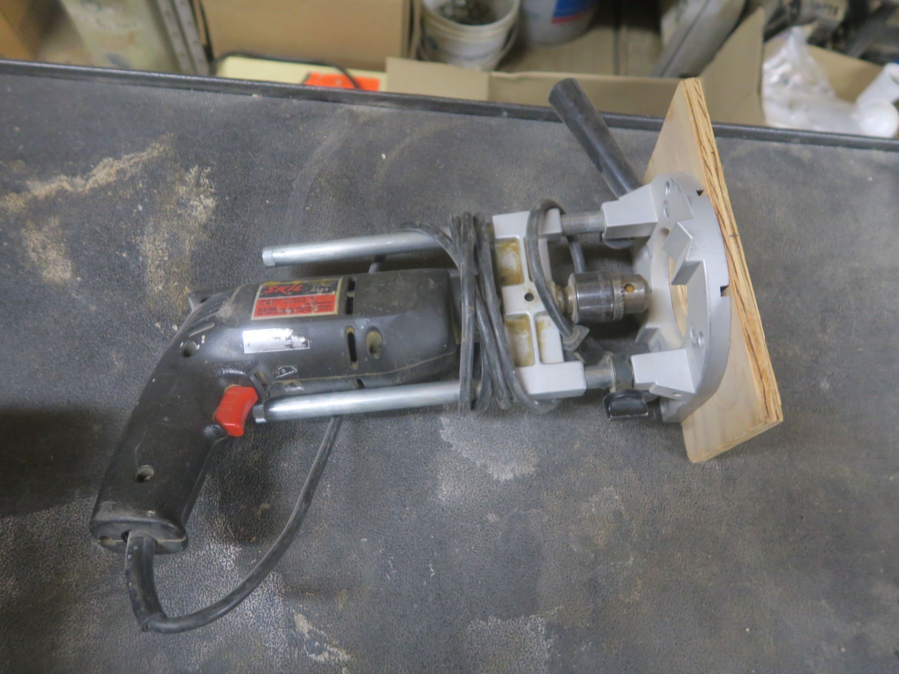 Variable speed drill on adjustable base