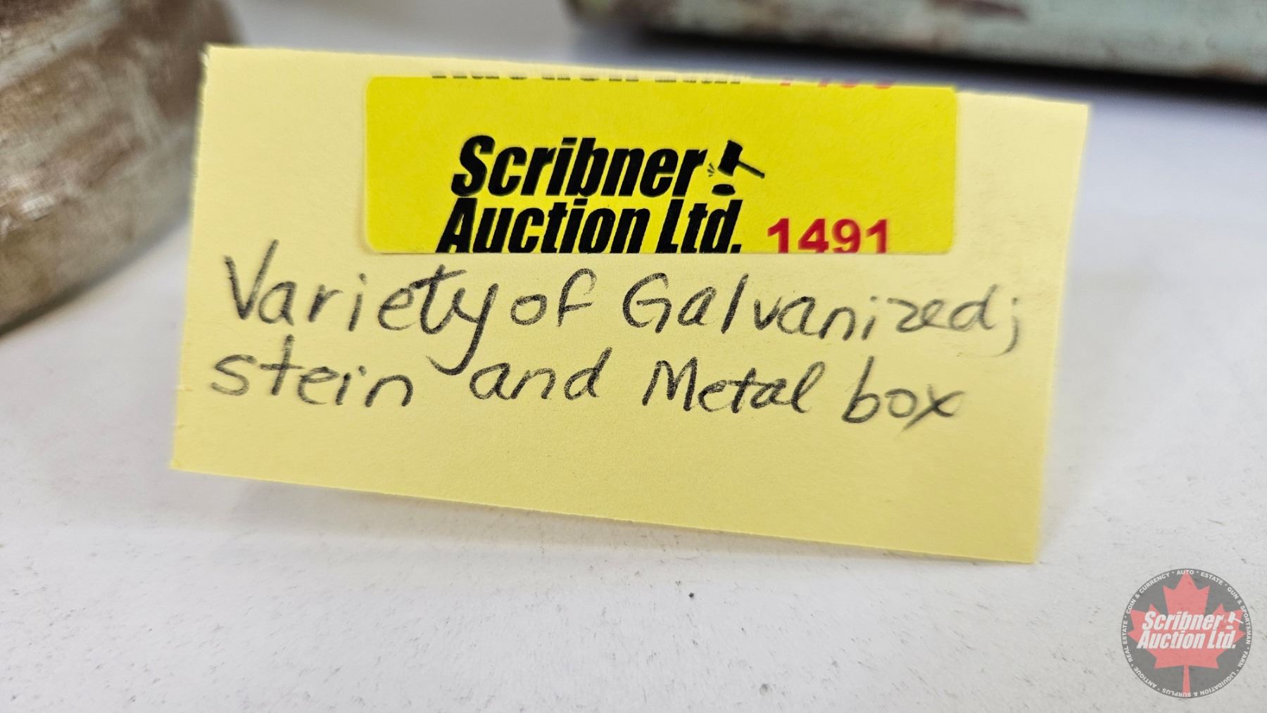 Variety Galvanized Jugs; Stein & IHC Metal Box