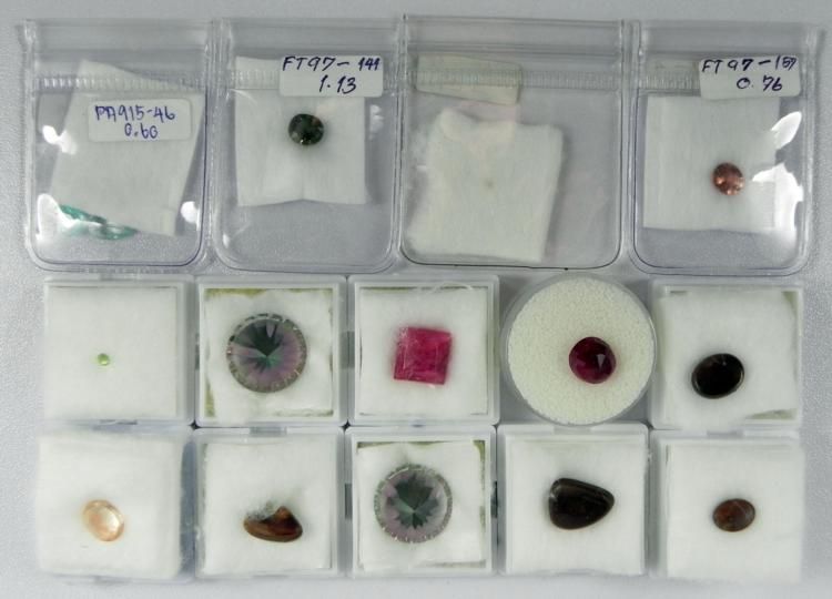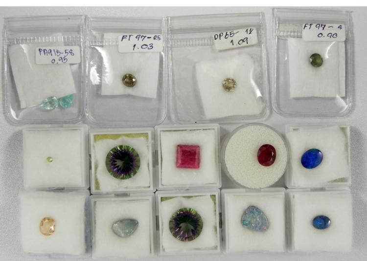 Offered here is a variety lot of 17 gemstones that come in different sizes, colors, shapes, and types. In this lot you will receive: * 4.50 Carat Natural Ruby1.10 Carat Clear Champagne Oregon2.85, 1.97, 1.90, and .71 Carat Australian Black Opal11 and 12 Carat Mystic Round Quartz4.97 African Octagon Cut Ruby2mm Round Cut Top AAA Green1.13, 1.03, and .90 Carat Natural Green Tourmaline and a .76 Carat Natural Pink Tourmaline.60 and .95 Carat Natural Rich Blue1.09 CaratsWe are not sure what type the 1.09 Carat gemstone is. * *