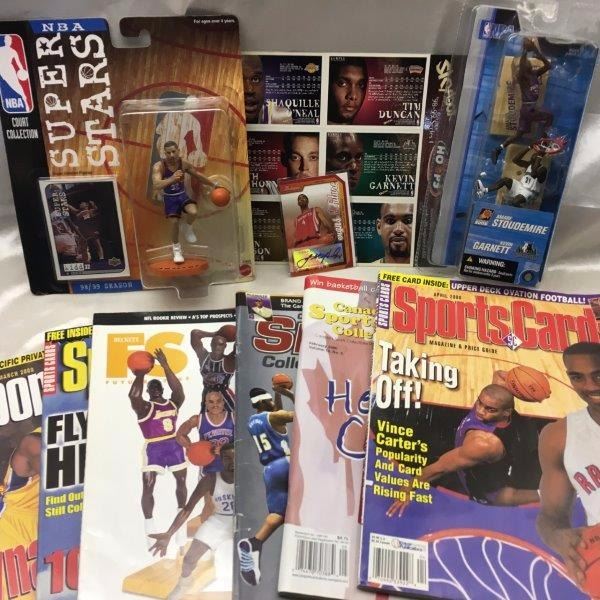 McFarlane Figurine (Amare Stoudemire/Kevin Garnett) & Mattel Figurine (Jason Kidd) & Sports Magazines & Autographed "Luther Head" Card & NBA Hoops Skybox 98-99 Series 1 Sheet of 6