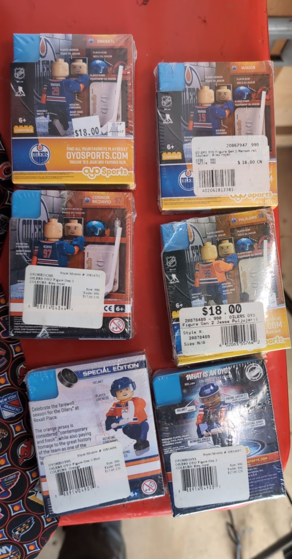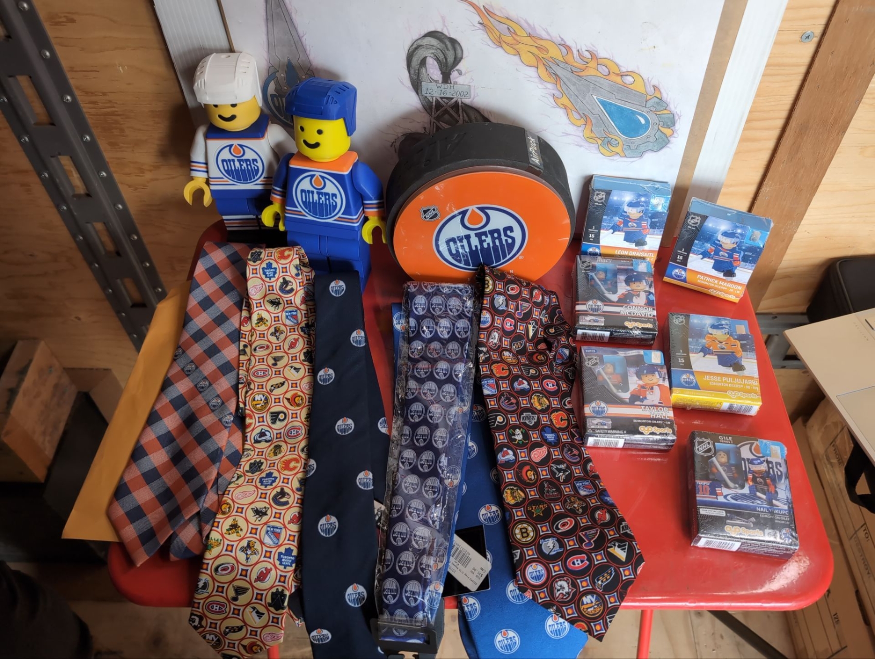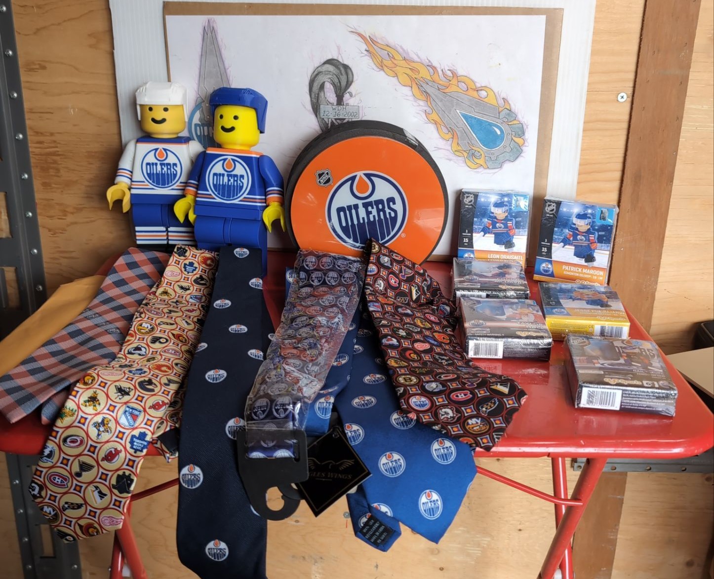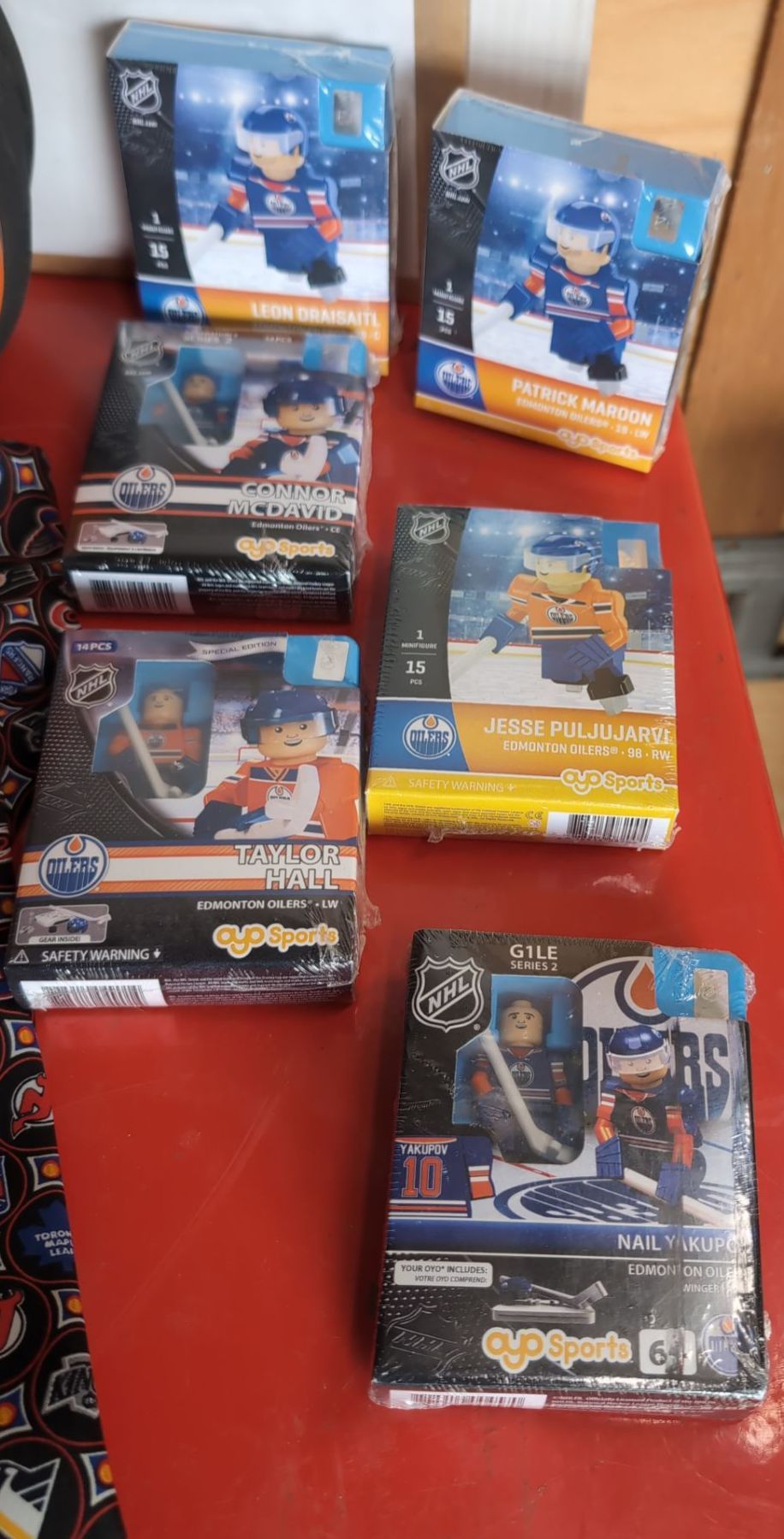 Variety of Oilers Ties and NHL teams, Multiple Legos of Connor, Leon, Taylor Hall, Air Puck and More
