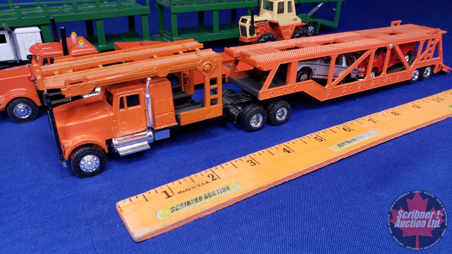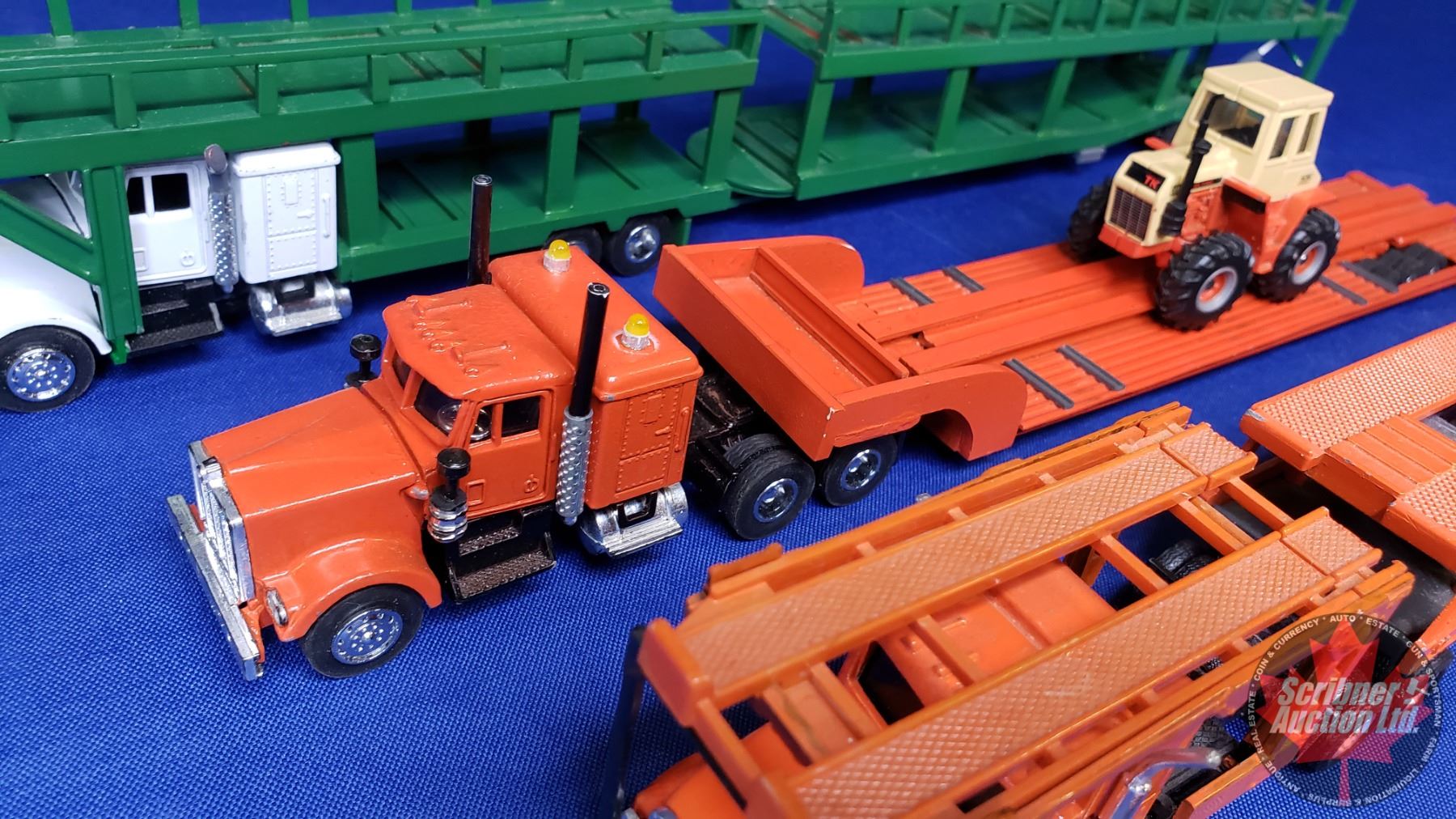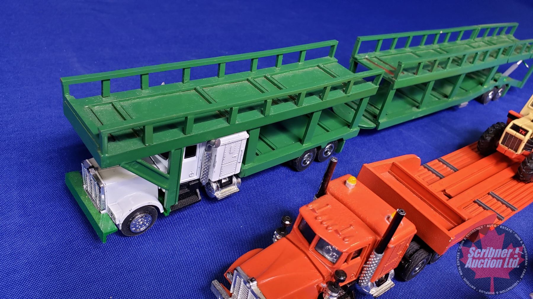 Variety of Semi Truck & Trailer Units Combo : (2 Car Haulers) & (1 Equipment Hauler) (Note: c/w 1 Tractor & 2 Cars) (Scale: 1/64) (SEE PICS!)