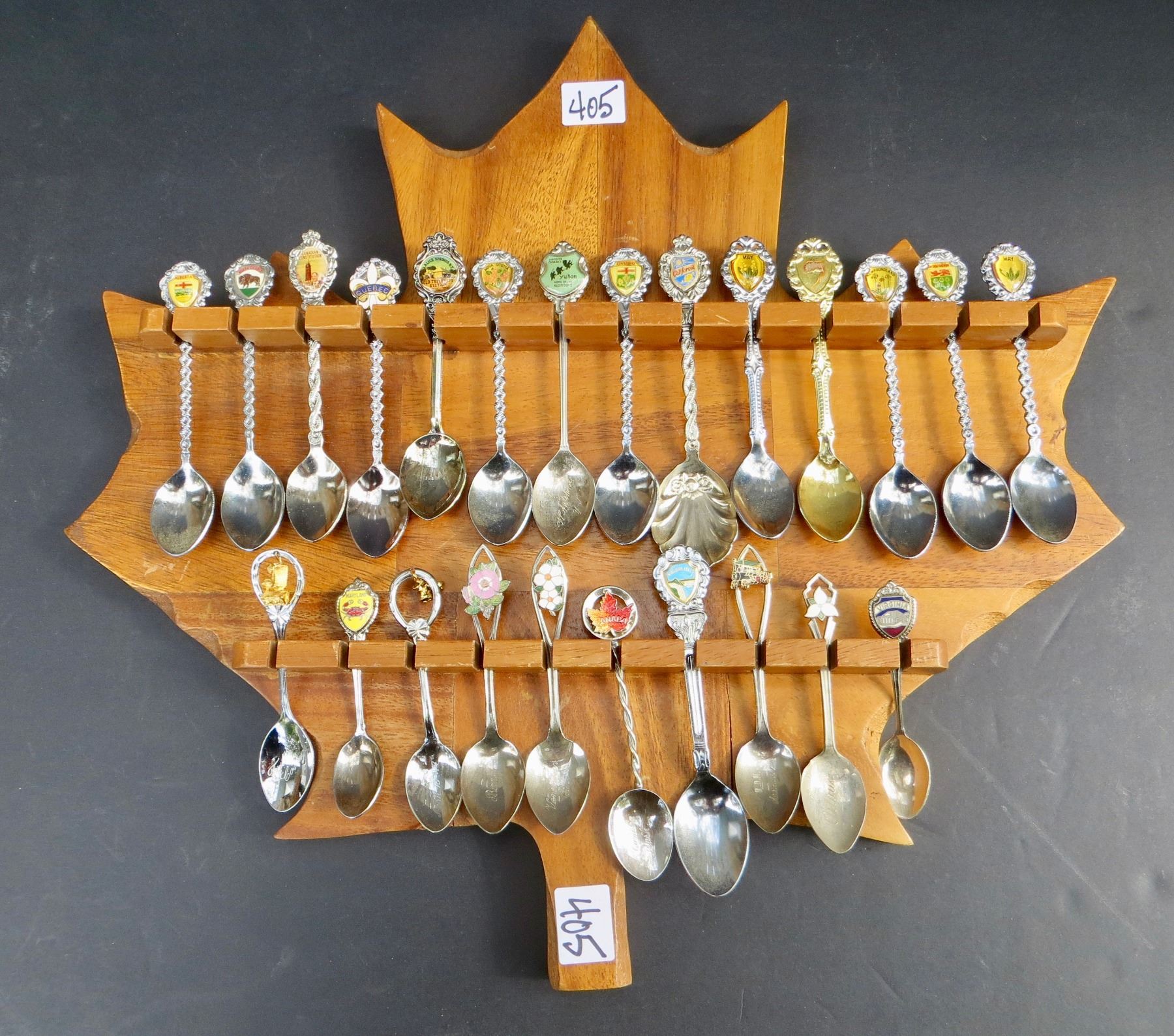 Variety of Souvenir spoons, w/ rack - 24pcs