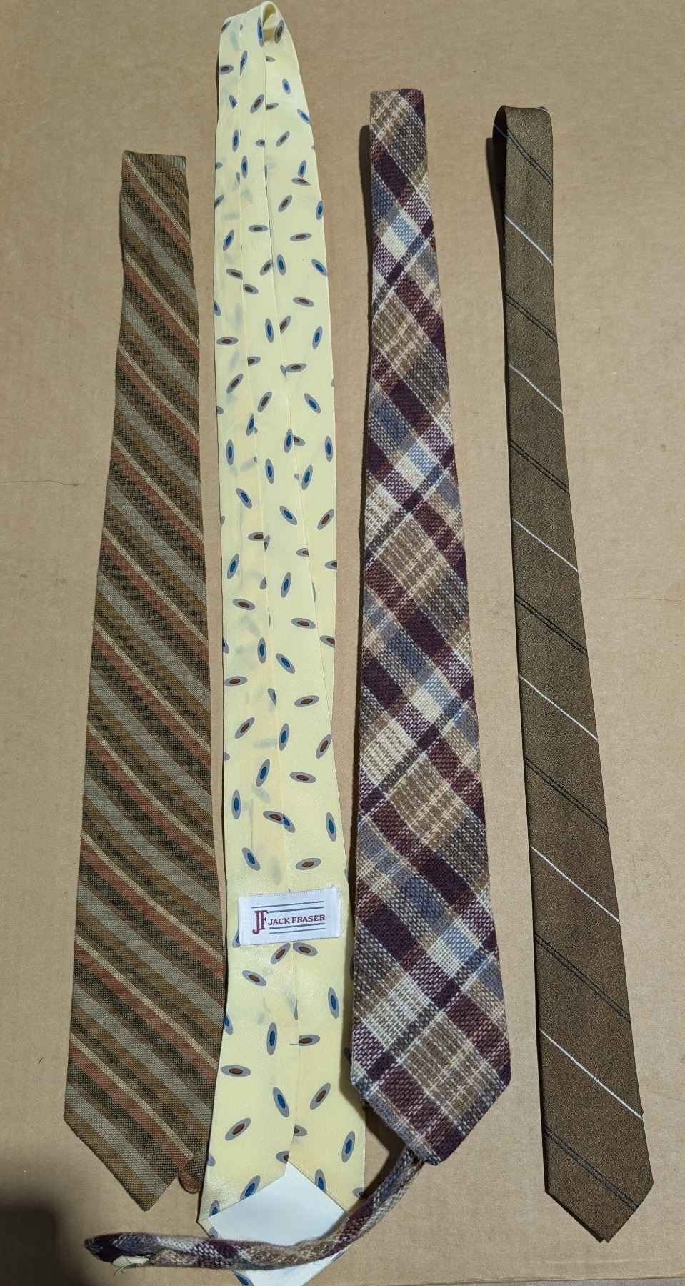Variety of ties with a tie hanger. All very good condition.