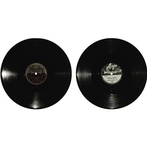 <B>Various 50s Artists - 78 Group of 4.</B></I> El Dorados "At My Front Door"/ "What's Buggin' You Baby" (Vee-Jay 147, 1955) in NM 8; Clarence "Frogman" Henry "Ain't Got No Home"/ "Troubles, Troubles" in NM 8; Kalin Twins "When"/ "Three O'clock Thrill" (Decca 30642, 1958) in NM 8; and Willows "Church Bells May Ring"/ "Baby Tell Me" (Melba 102, 1956) in GM-MT 10. <I>From the GRT Collection.</B></I><BR><BR><b>Shipping:</b> Recordings (<a target="_blank" href="http://www.heritageauctions.com/common/shipping.php">view shipping information</a>)