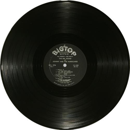 <B>Various '60s Rock Instrumental LP Group of 2 (1960).</B></I> Two great, early Rock instrumental groups are represented in these two hard-to-find gems: "The Big Sound of Johnny and the Hurricanes", the group's third album (Big Top 1302), in NM 8/ MT 9, and Santo and Johnny's "Encore", the duo's second album (Canadian American 1002 in Stereo, 1960) in NM 8/ VG-EX 6. <I>From the GRT Collection</B></I>.<BR><BR><b>Shipping:</b> Recordings (<a target="_blank" href="http://www.heritageauctions.com/common/shipping.php">view shipping information</a>)