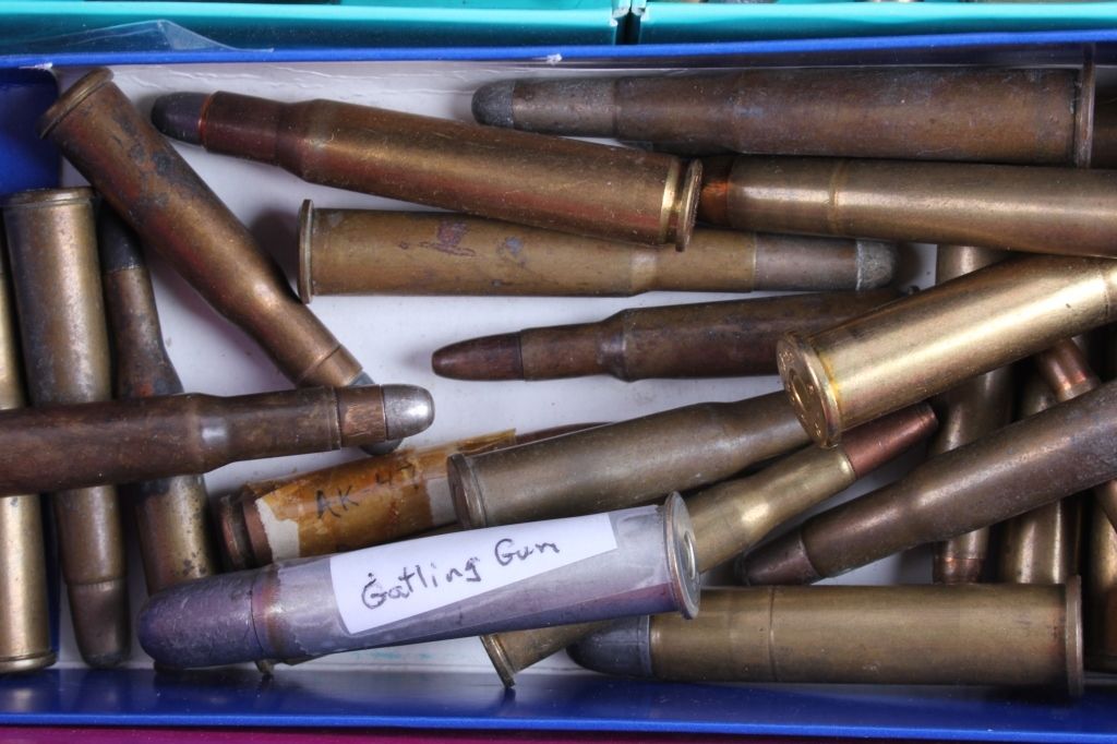 This collection includes many rare and desirable caliber's such as: Gatling Gun Round, 45-70 Gov't, Russian Made original AK-47 round, 38-55, 38-40, 351 S.L., 22 REM Jet, 22 Hornet, 25-20, 43, 30-40, 10 GaugeWinchester New Rival, Peters 12 Gauge exposed side Referee and Target Rounds, and so much more. There is also many rare empty cartridges. 11 un-fired Shotgun Shells, 63 unfired Rifle Rounds, 126 unfired Hand GunRounds, and 46 brass cartridges. All sell as one lot.