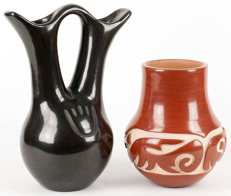 Signed underside: Left: faded and partial signature (indistinct); Right: Mary Cain Santa Clara Pueblo Ceramic