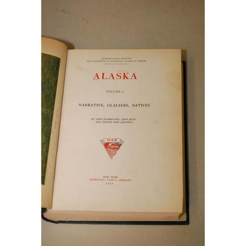 Various Authors. Harriman Alaska Expedition - 12 Volumes in 13. New York / City of Washington: Doubleday, Page & Company / Smithsonian Institute, 4to - over 9¾" - 12" tall. Hard Cover. Ex-Library. In Good Condition. 1901-1914. Volumes 1-5, 8-14. Volumes 6 & 7 were never published. Authors include John Burroughs, John Muir, George Bird Grinnell. Photographers include Edward S. Curtis (photogravures). Color plates include heliotypes of birds by Louis Fuertes. Volumes I & II are first editions dated 1901, NY: Doubleday, Page & Co. The other volumes are published by the Smithsonian Institute, retaining the original Doubleday, Page & Co. title pages (except Volumes 14, parts 1 & 2 which were originally published at the Smithsonian). Volume 1 has been trimmed and in a library binding, others in original bindings with gilt illustration on front cover, top edges gilt. Bindings tight, 2 hinges cracked. Subjects include: Narrative, Glaciers & Natives, History, Geography & Resources, Glaciers and Glaciation, Geology & Paleontology, Crytogamic Botany, Insects, Crustaceans, Nemerteans & Bryozoans, Enchytraeids & Tubicolous Annelids, Land and Fresh Water Mollusks & Hydroids and a Monograph of the Shallow-Water Starfishes of the North Pacific Coast. Uncollated - sold as is.